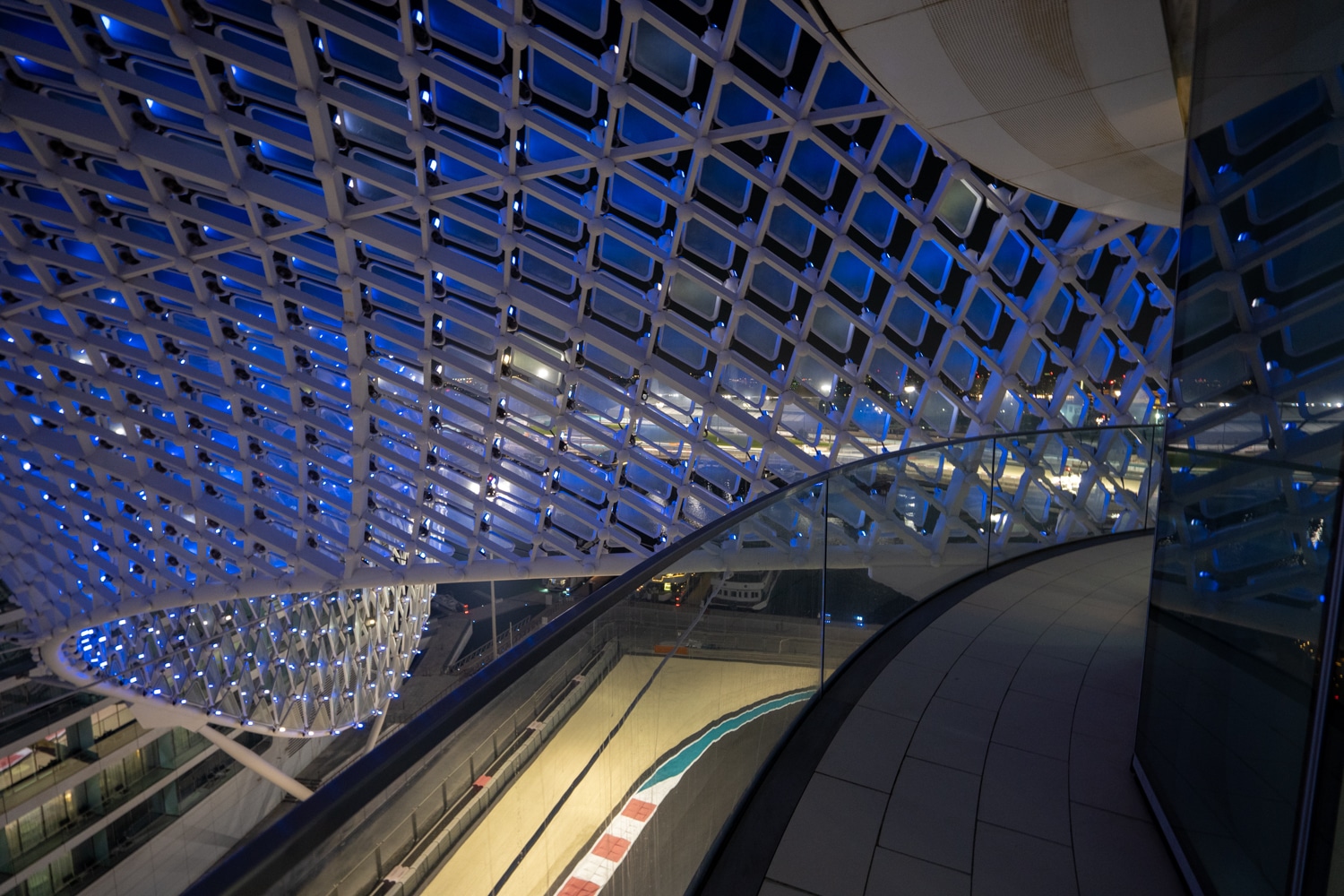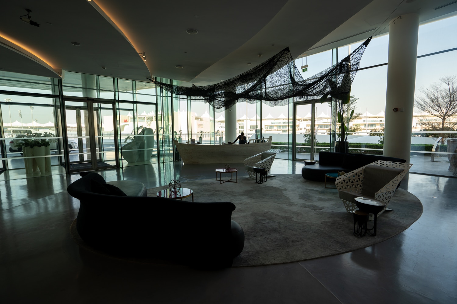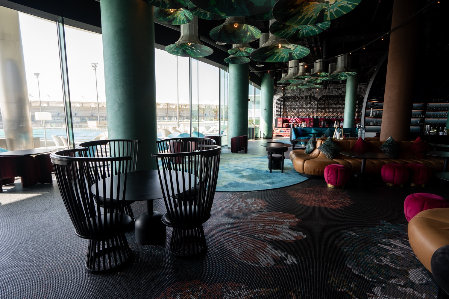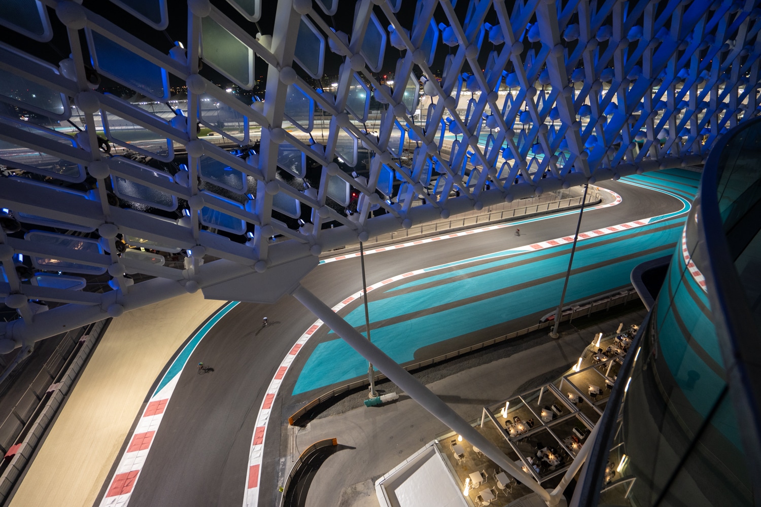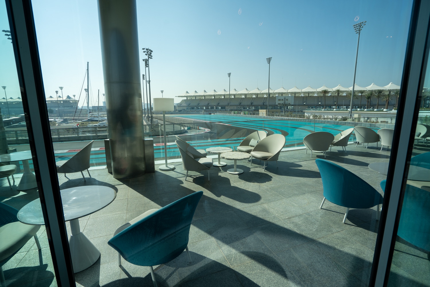 It’s nestled directly at the curve of the Yas Marina Circuit in the island’s entertainment district, between the Formula One racetrack and Yas Marina.
