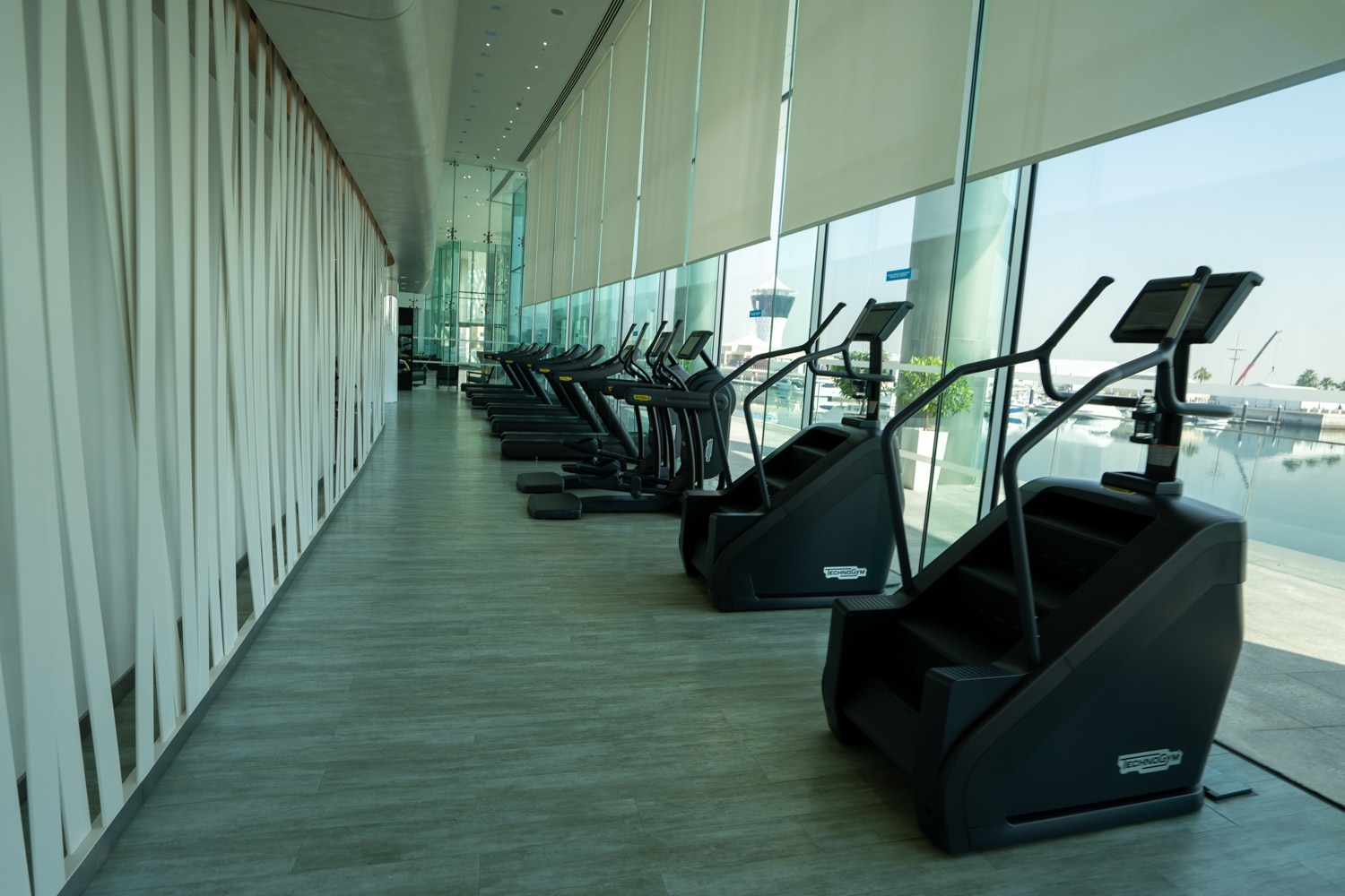 Additionally, locker rooms, saunas, and steam rooms are accessible through the gym.