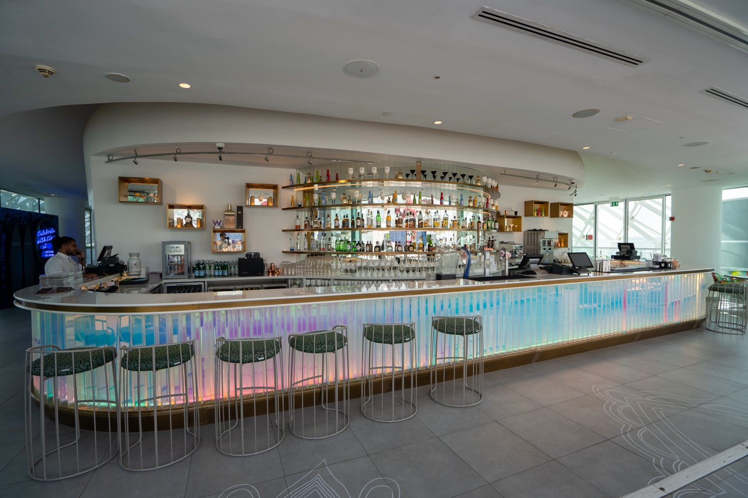 The bar at the WET Deck has a colourful and funky chic vibe, as do the daybeds, with splashes of colour and unique shapes and designs.