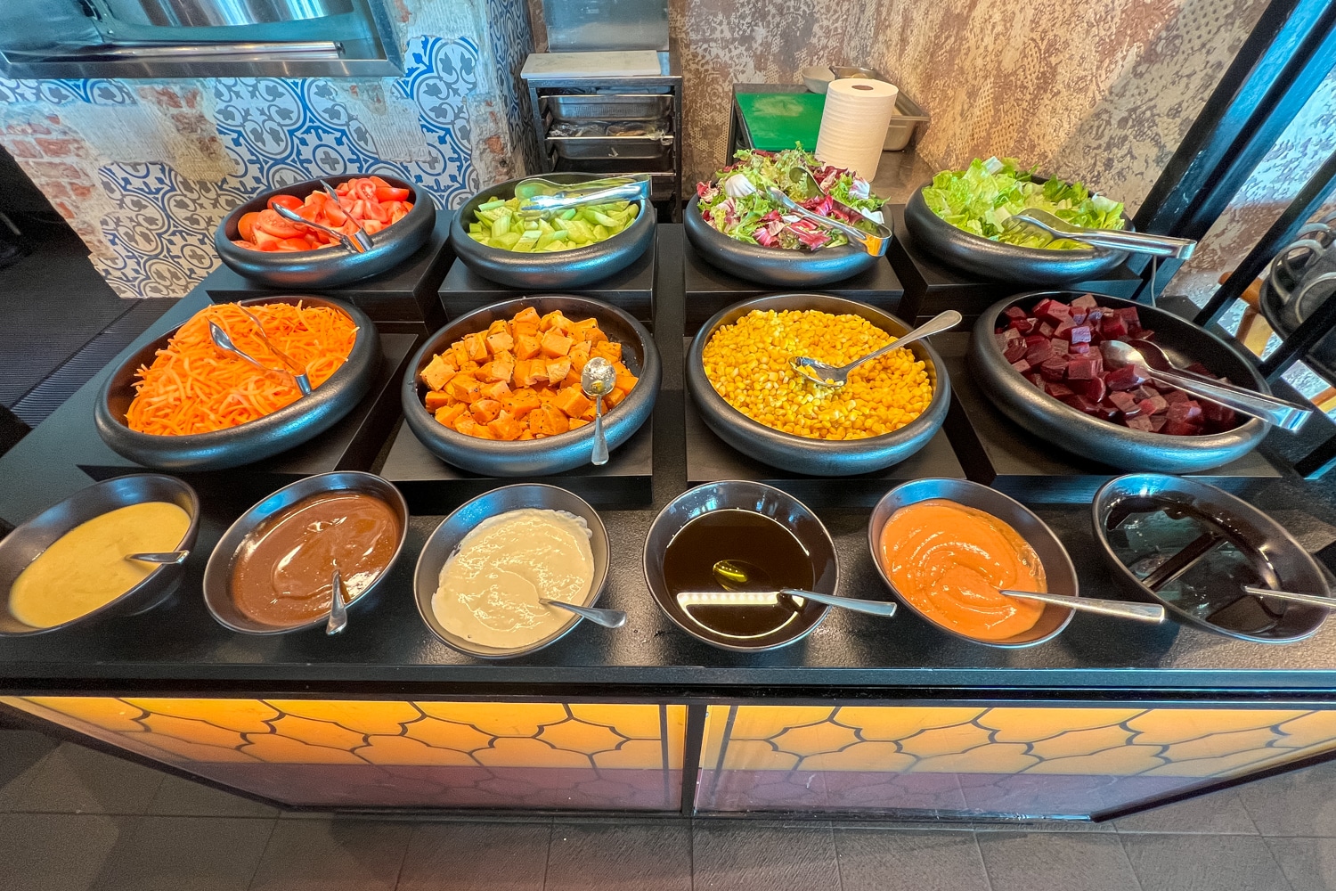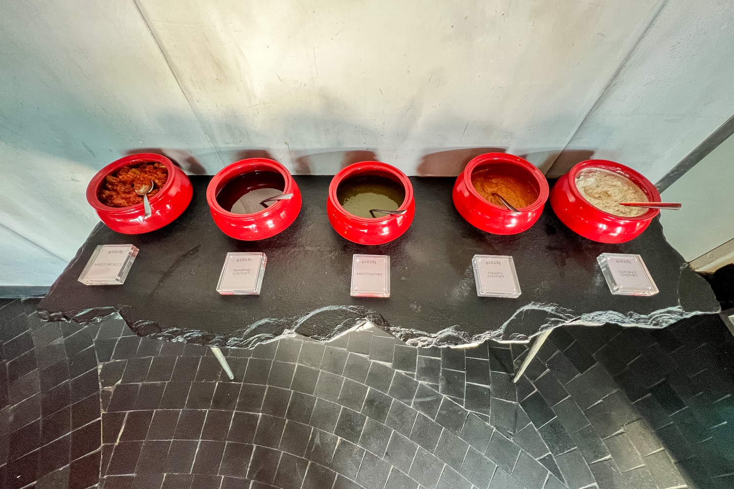 Then there’s an assortment of dips, spreads, chutneys, and a salad bar.