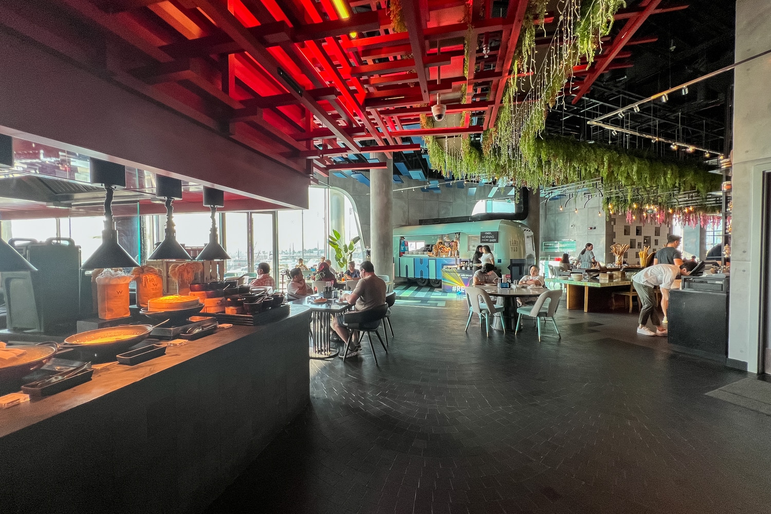 The restaurant has ample seating both indoors and outdoors, ranging from large communal tables to regular four-person dining. The interiors evoked a street food atmosphere, with some stations mimicking food trucks.