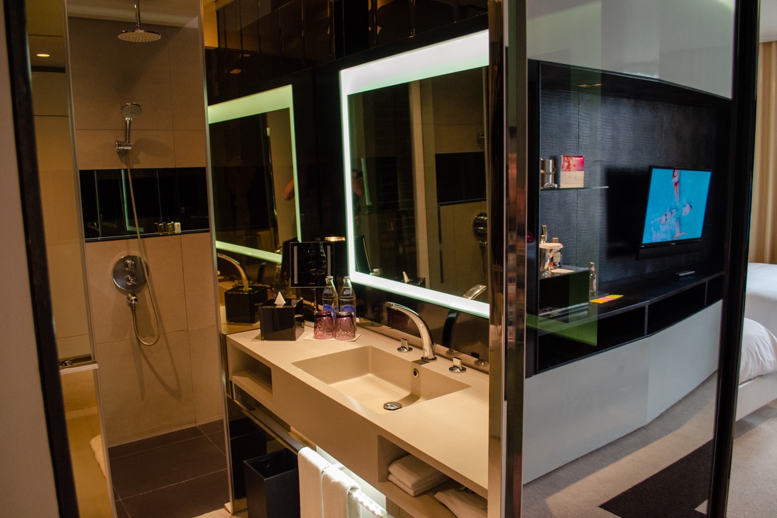 With sheer walls and doors that only cover up one space at a time, there’s definitely a playful element to the rooms at the W Bangkok. However, it’s also good to know that there are options available for people who are looking for a bit more privacy.