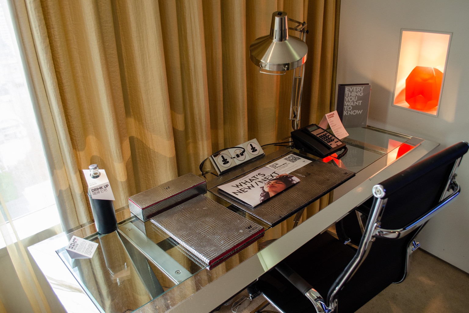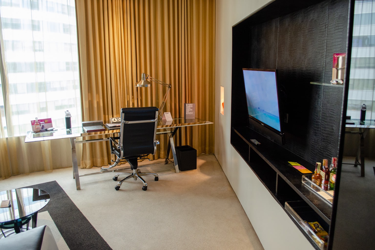 A long glass desk is tucked against the window, and looked very similar to the one in the Marvelous Suite.