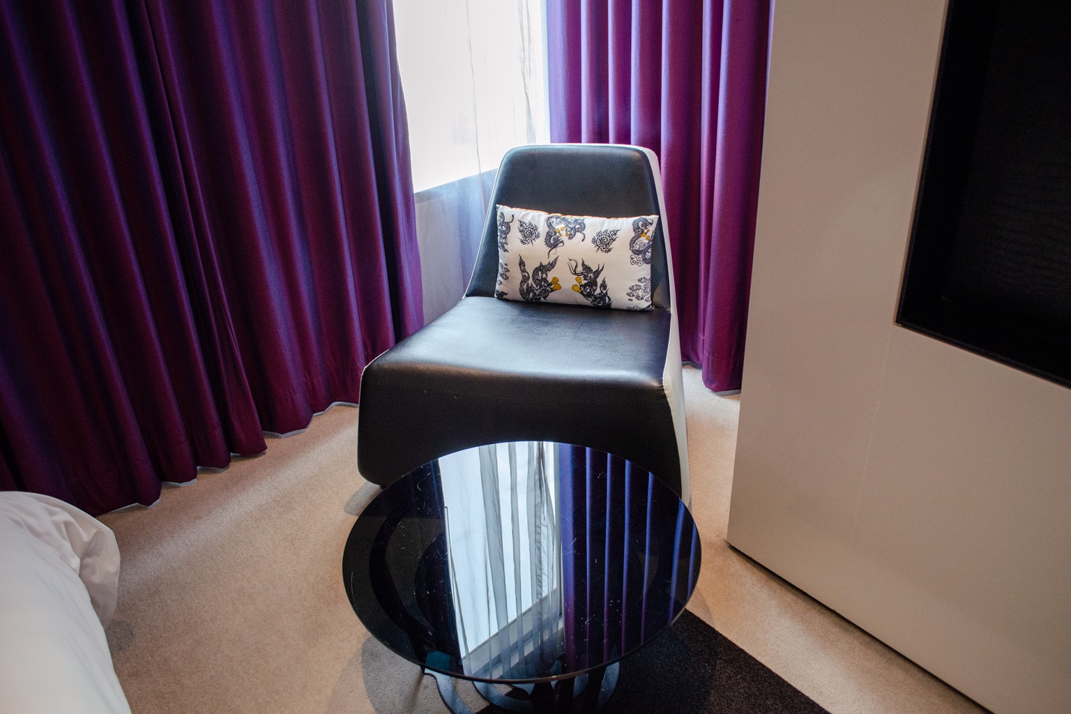 As we made our way towards the room, I couldn’t help but notice the hotel’s dark hallways and colour scheme that is a vestige of the W brand’s past. I learned that the W Bangkok opened its doors in 2012, and the pink, purple, and black certainly confirmed this.