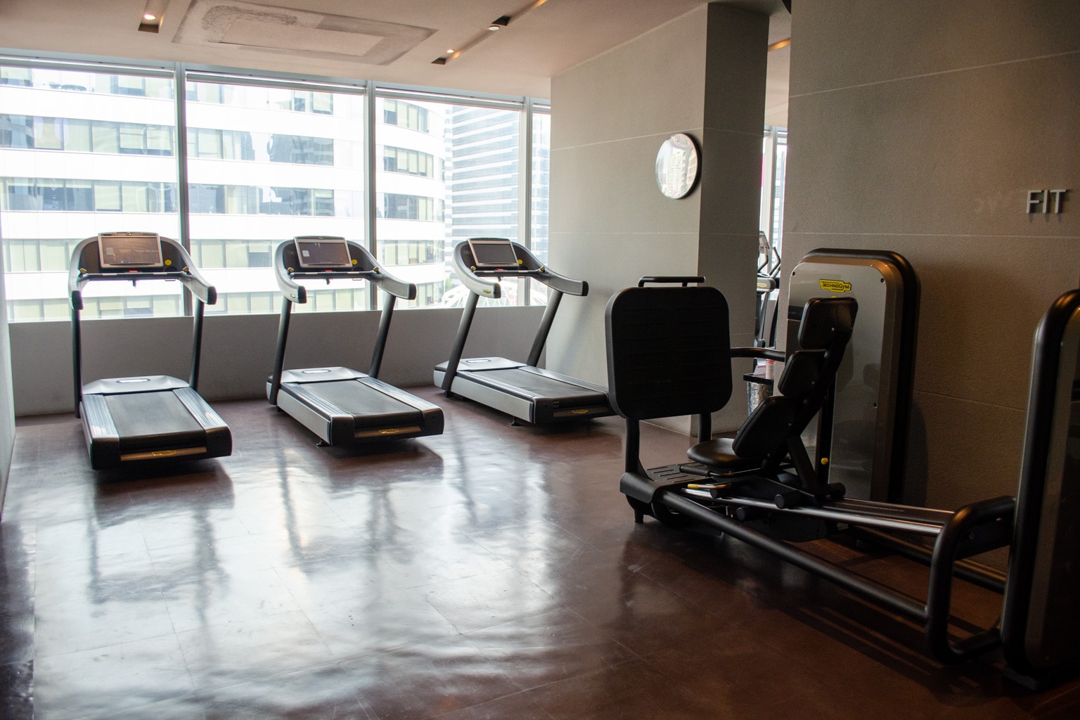 You’ll also find free weights, strength training machines, a punching bag, and exercise balls, with plenty of natural light coming in from outside.