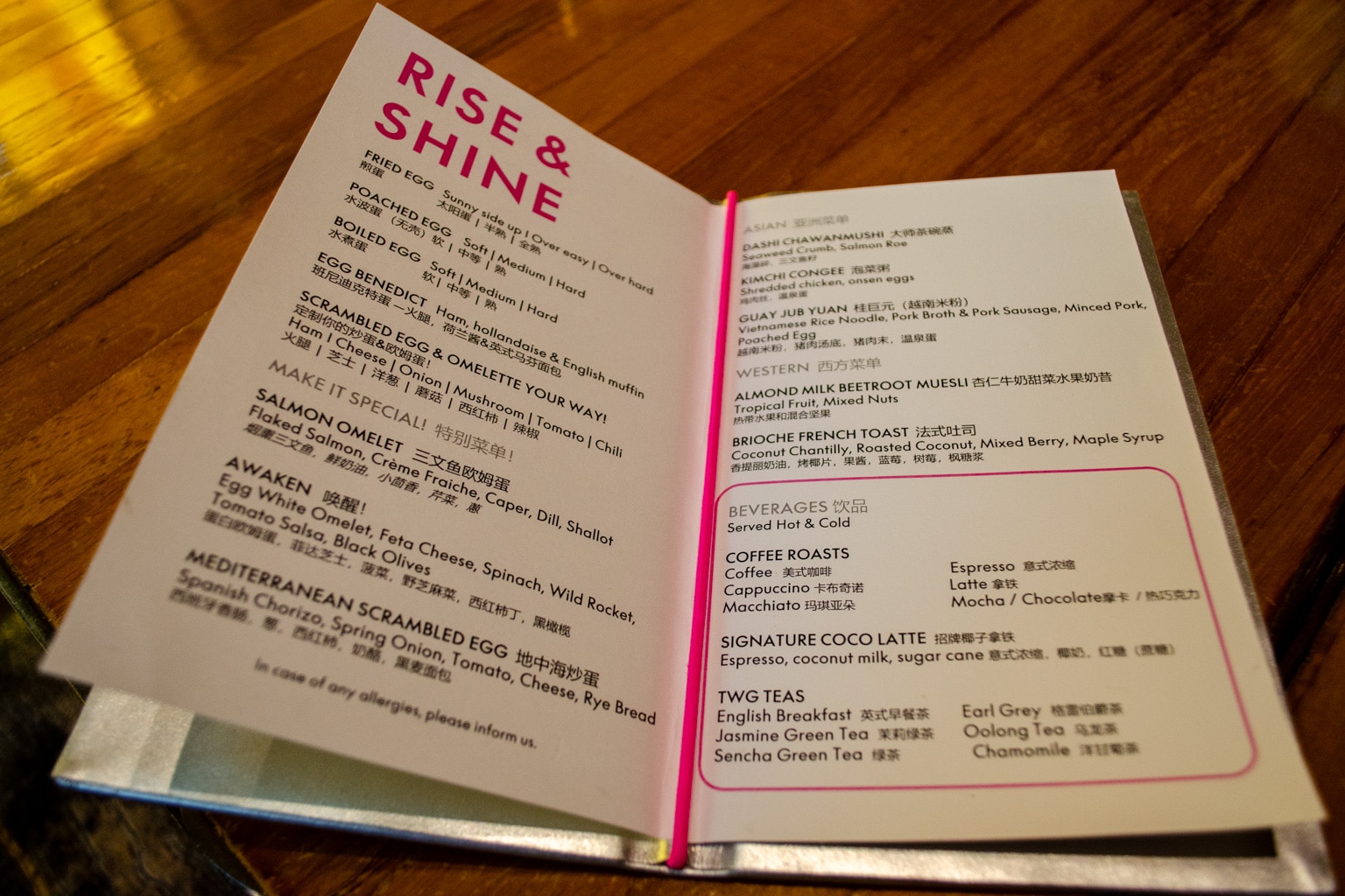 There’s also an à la carte menu available, which offers eggs done in a variety of jazzed-up ways, some Asian dishes such as kimchi congee, Western items such as brioche French toast, and a number of hot and cold beverages.
