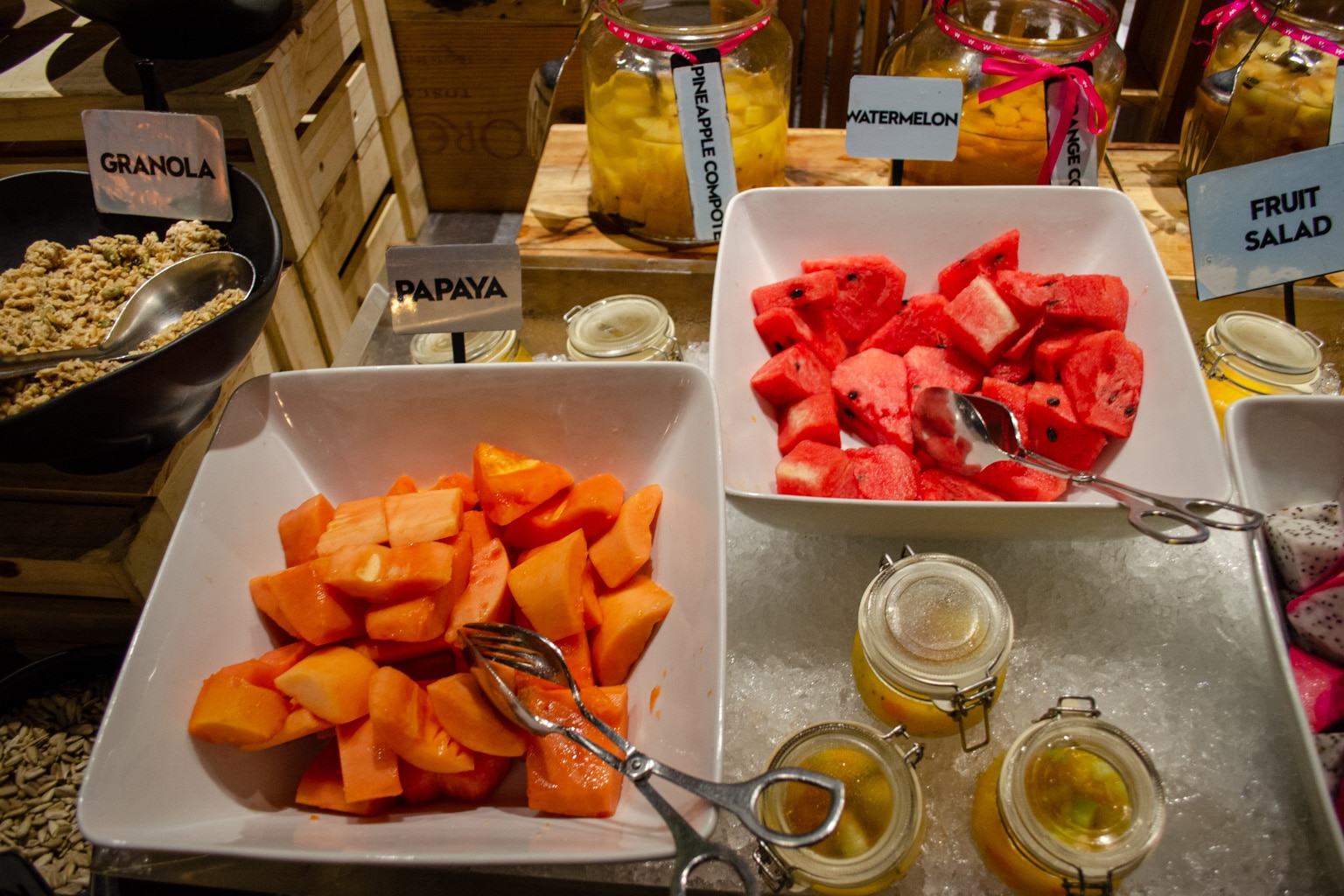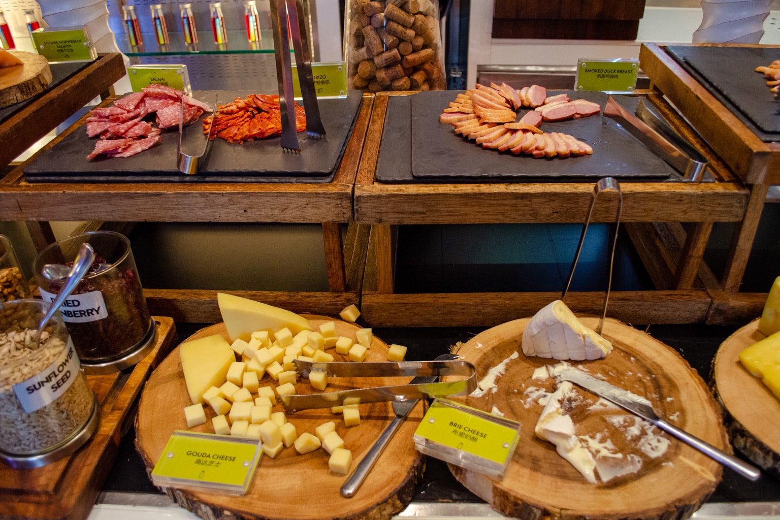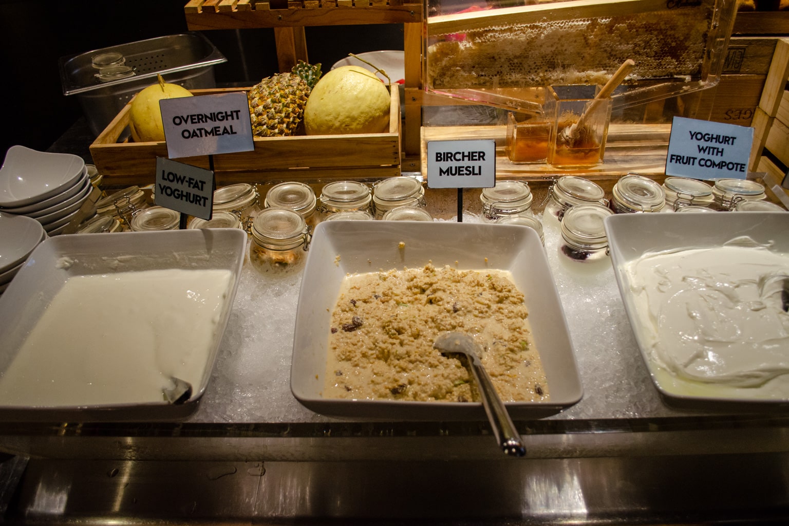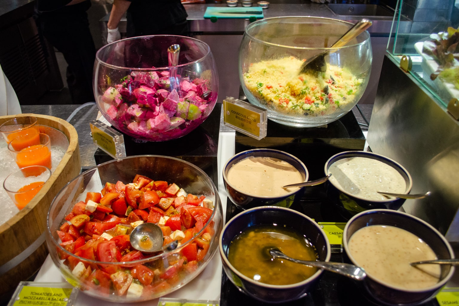 The range of cold buffet items was equally as impressive, with an incredible variety of fresh fruits, cured meats, cheeses, pastries, granola, cereal, and a full salad bar.