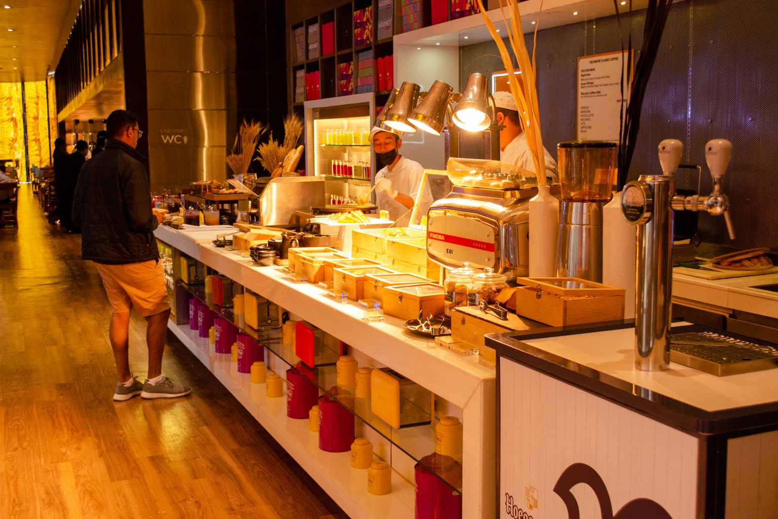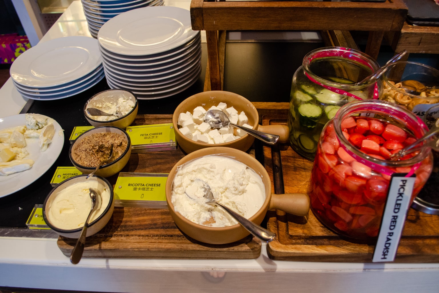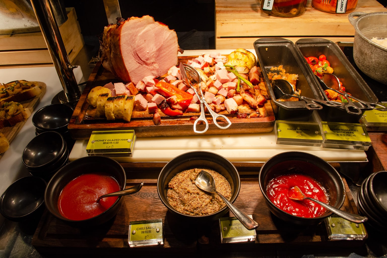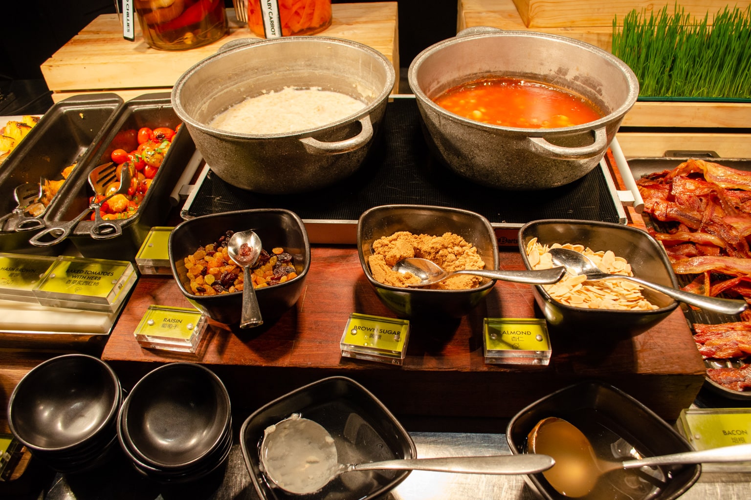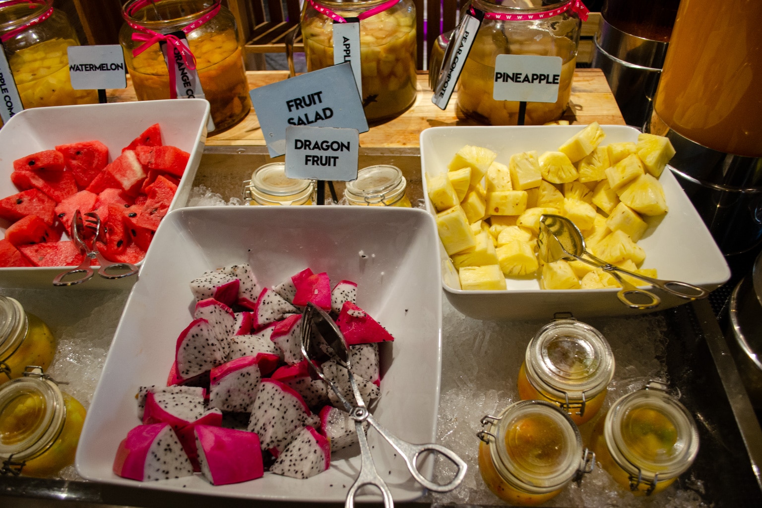The range of cold buffet items was equally as impressive, with an incredible variety of fresh fruits, cured meats, cheeses, pastries, granola, cereal, and a full salad bar.
