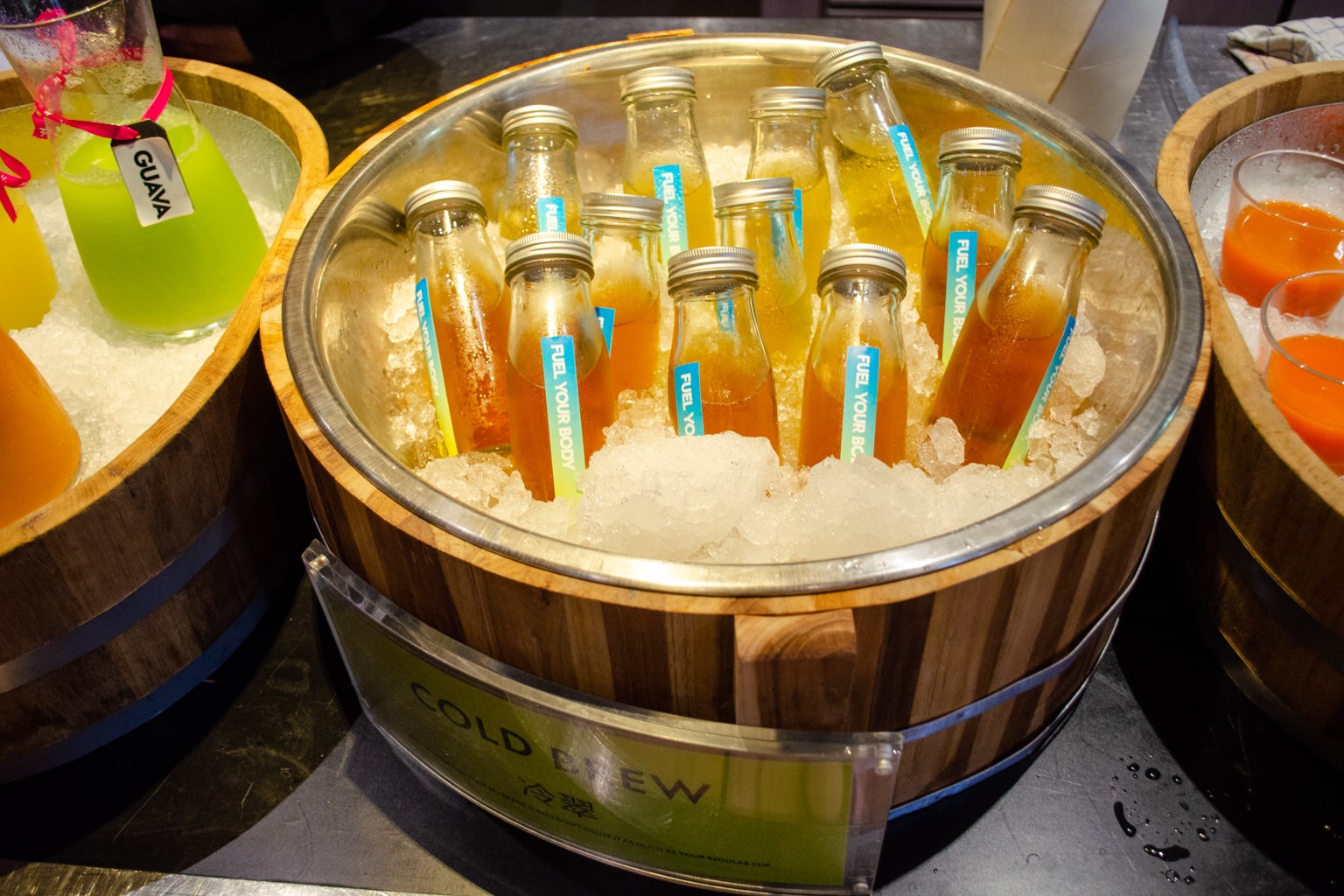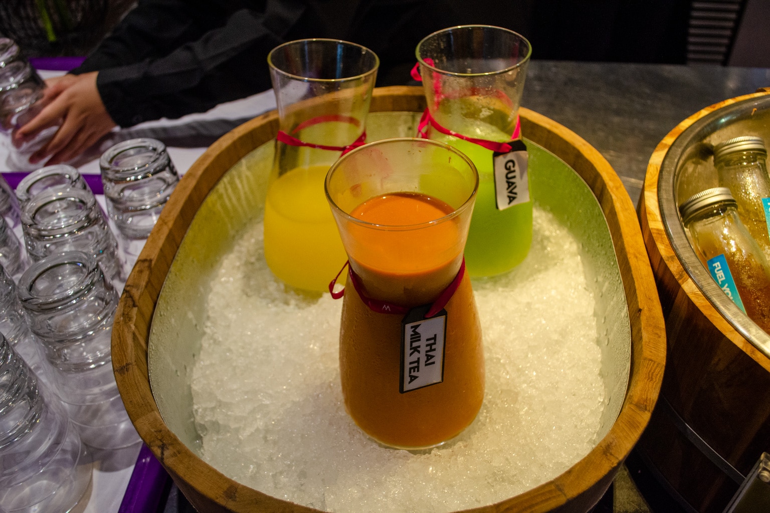 Aside from the drinks available from the à la carte menu, you can find Thai iced tea, fresh-pressed juices, and a range of beverages available in the buffet area.