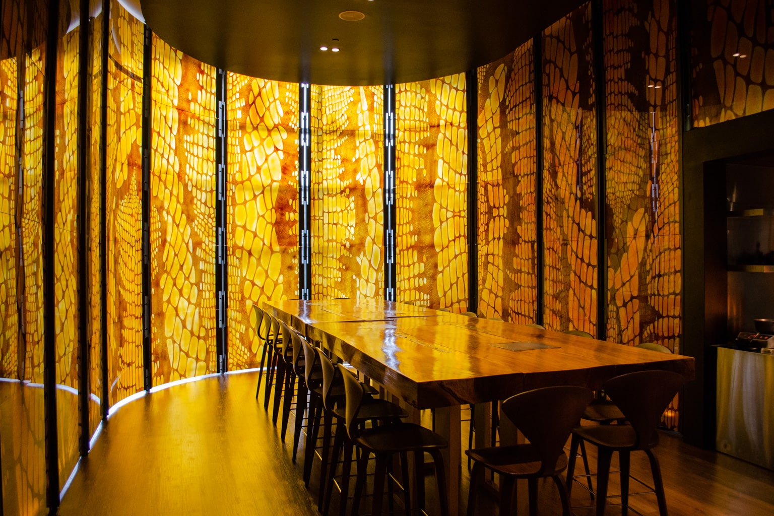 Some of the walls at The Kitchen Table are decorated in a snakeskin motif, which I thought was a honeycomb at first. The amber hues provide a nice glow to the restaurant, and I found it to be quite visually appealing.