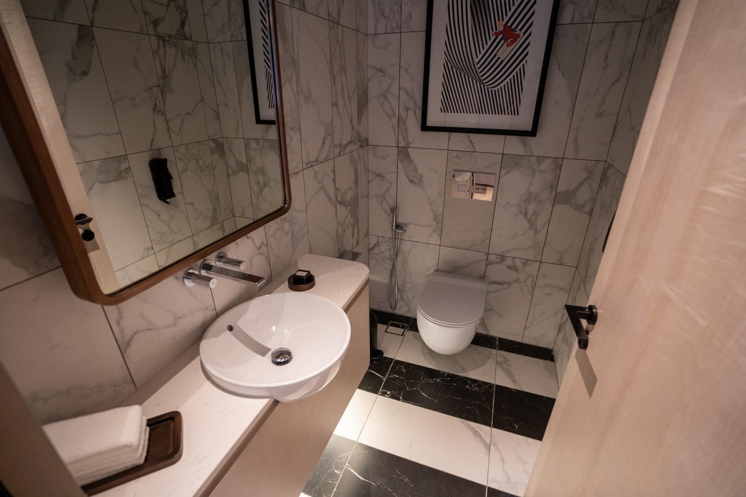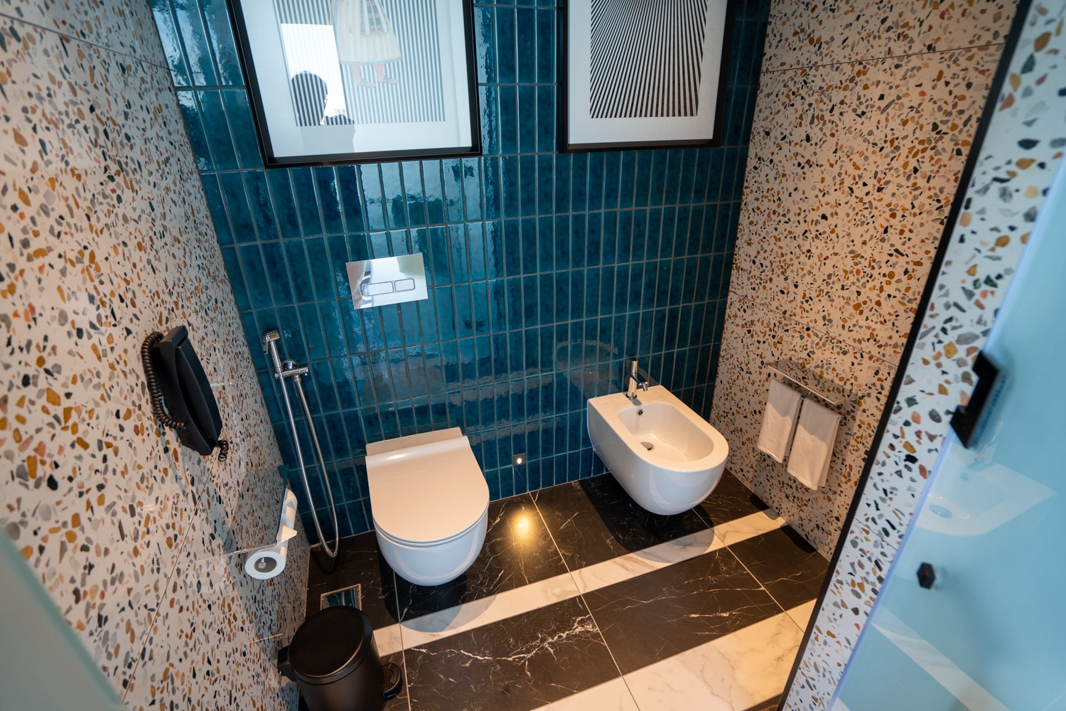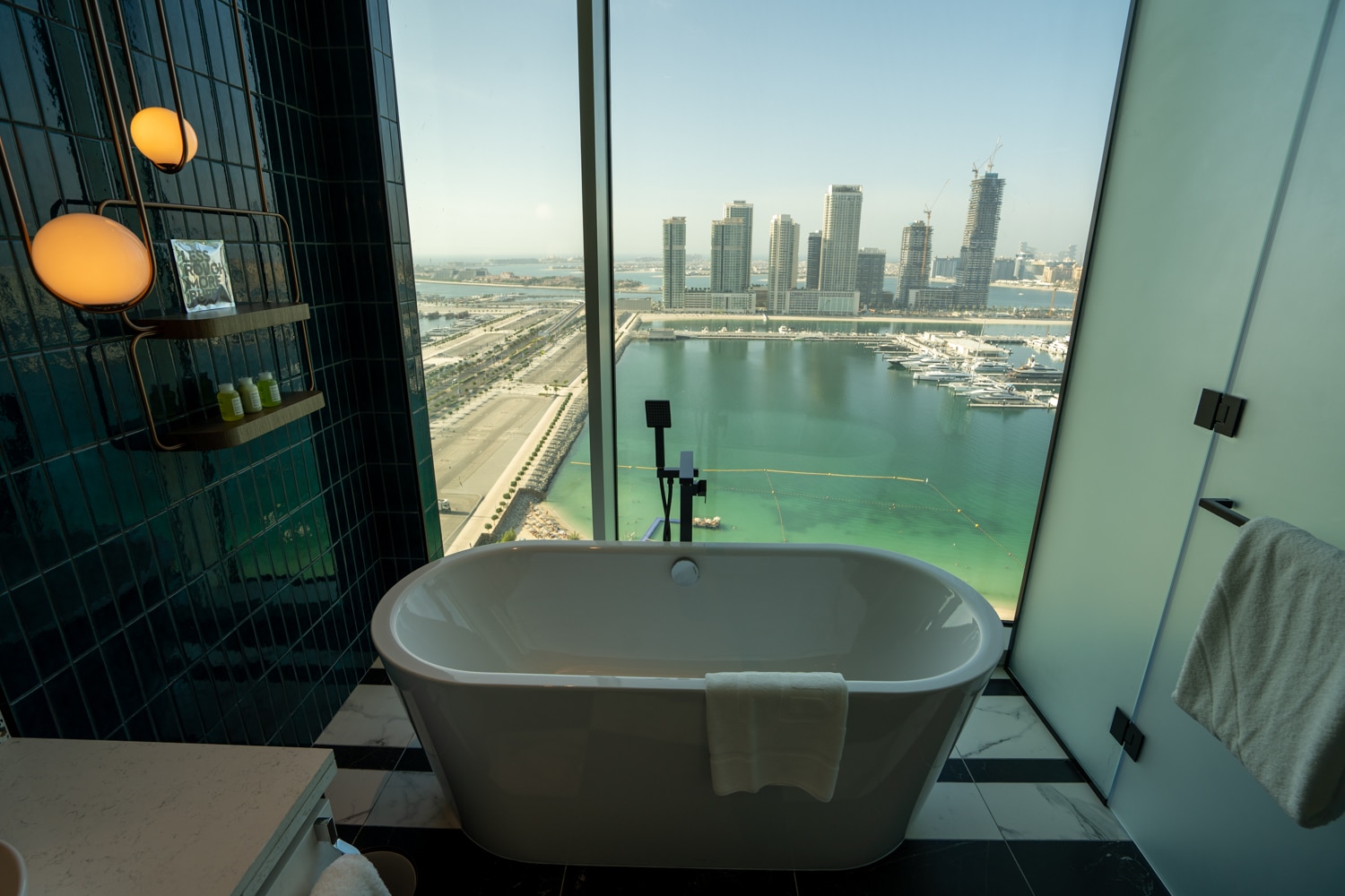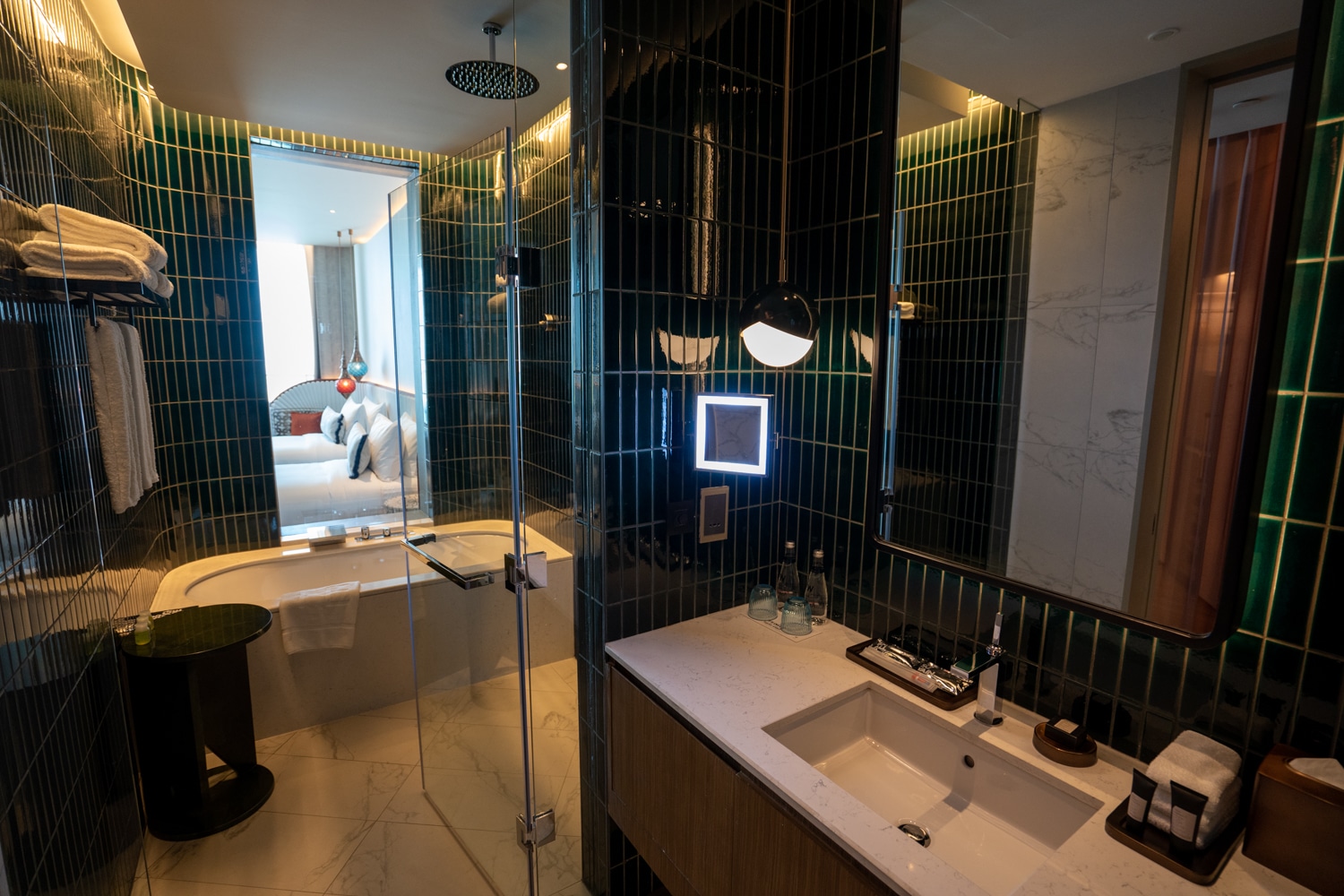 Overall, I was impressed by the detailed and thoughtful design of the rooms and suites at the W Dubai Mina Seyahi. The bathrooms in particular are quite remarkable, with unique elements such as retro tiling and unique brass accents.