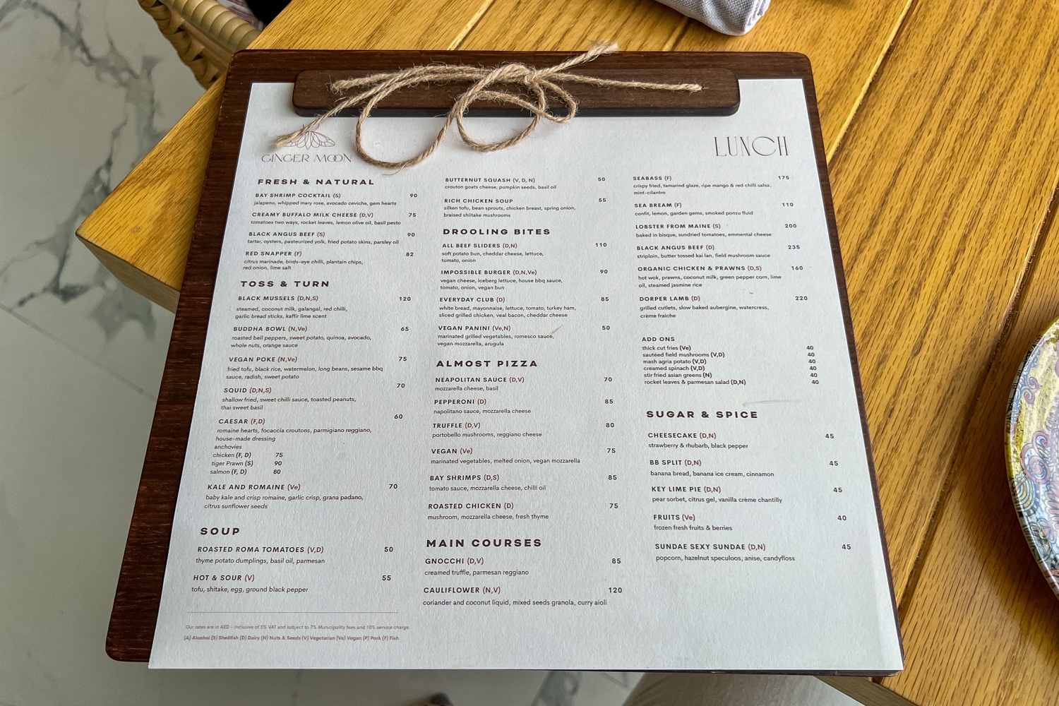 After breakfast, Ginger Moon presents a pan-Asian-inspired menu featuring a wide variety of dishes such as sticky lamb ribs, citrus-topped sashimi, and crispy calamari.