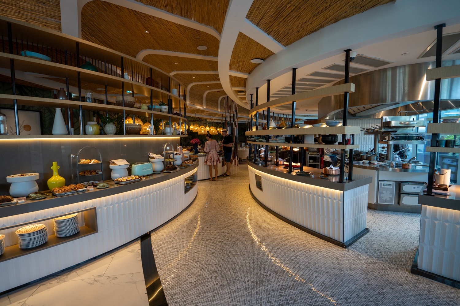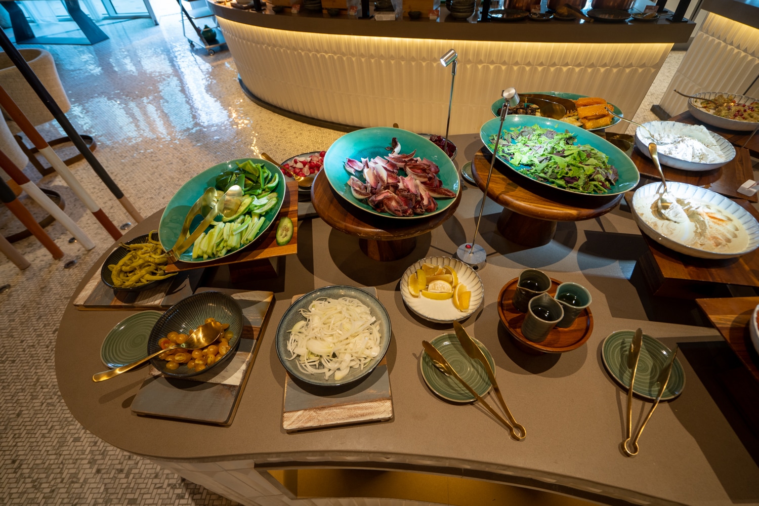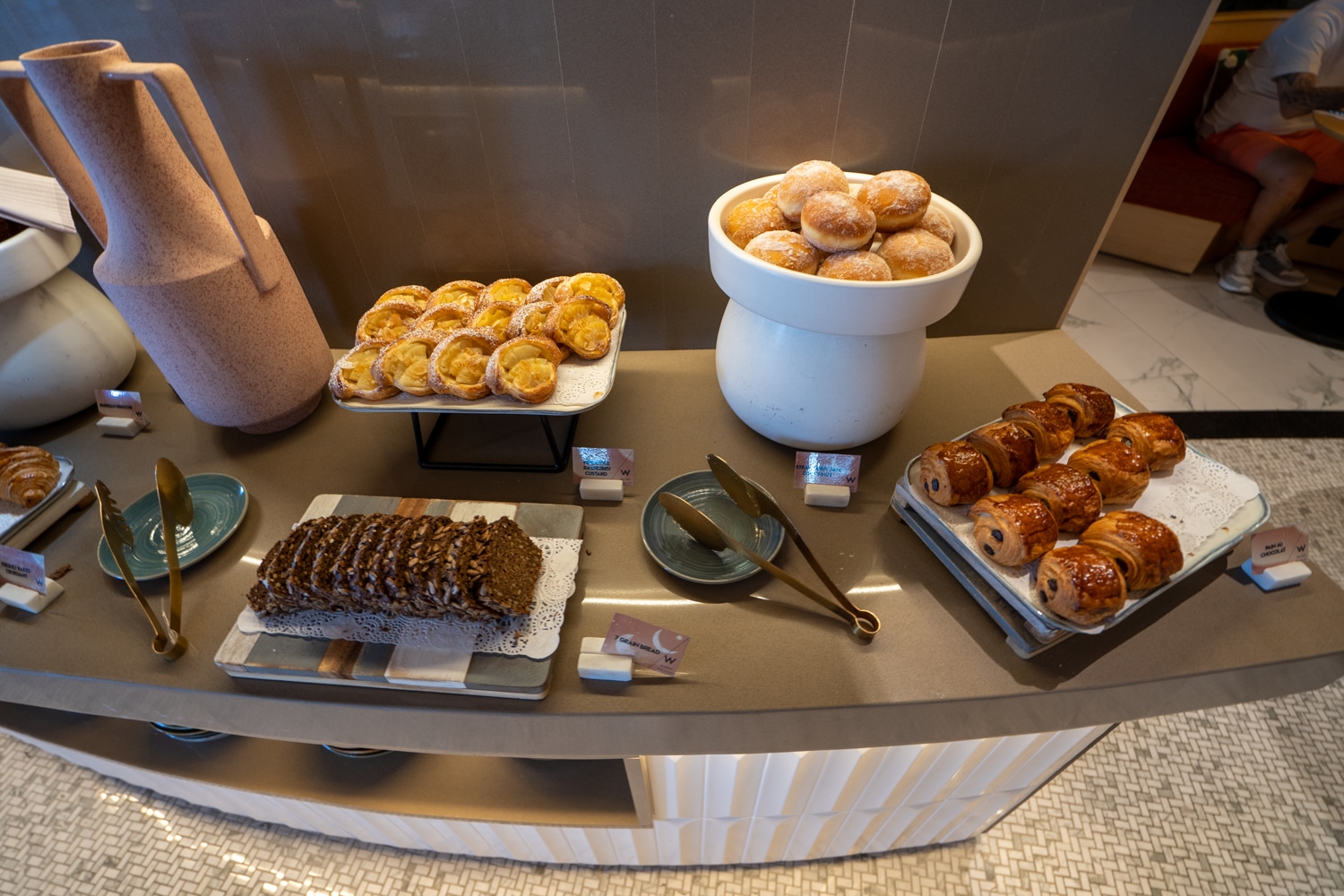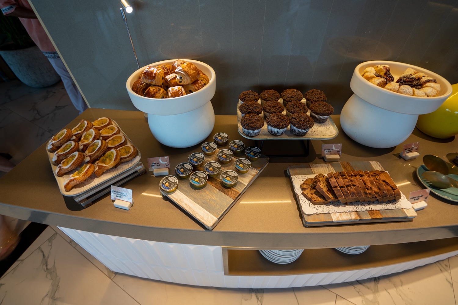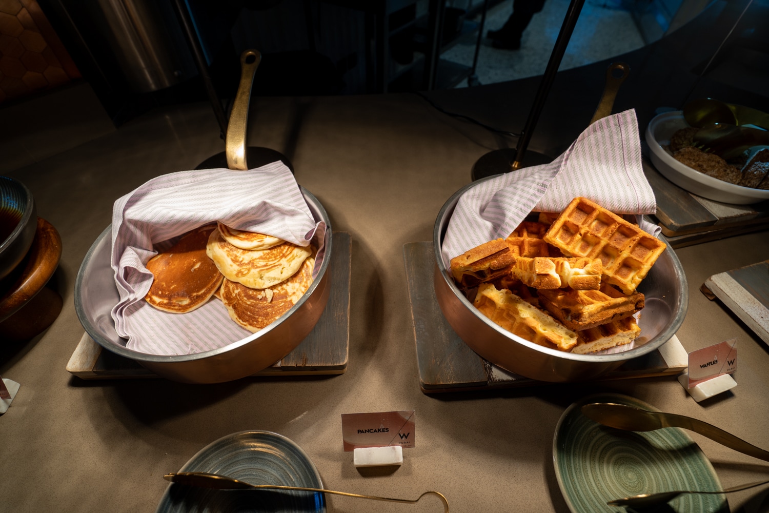 There are freshly baked pastries, cured meats, cheeses, and freshly-baked bread, as well as all the traditional Western staples such as sausages, bacon, hash browns, waffles, and pancakes.