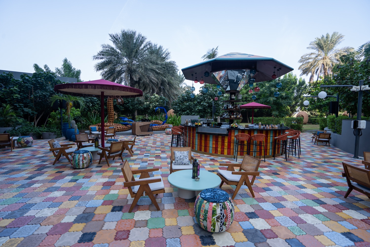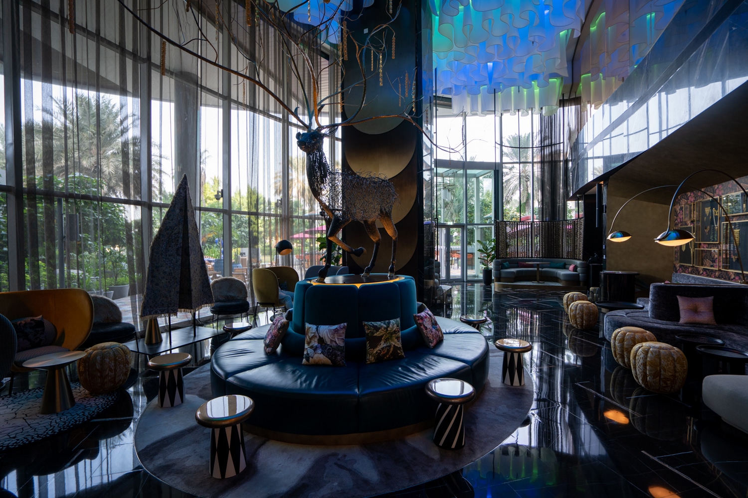 Turning right from the entrance, there is another welcoming seating arrangement inspired by the traditional storyteller circles. There are ample plush sofas and cushy slipper chairs facing one another, adorned with colourful throw pillows and gold-embellished side tables.