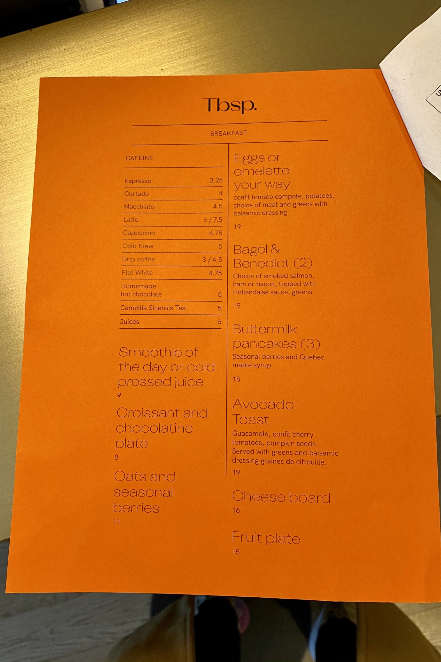 The limited breakfast menu looked as follows, and I was informed that we’d each be entitled to a $29 allowance to spend on breakfast, for a total of $58:
