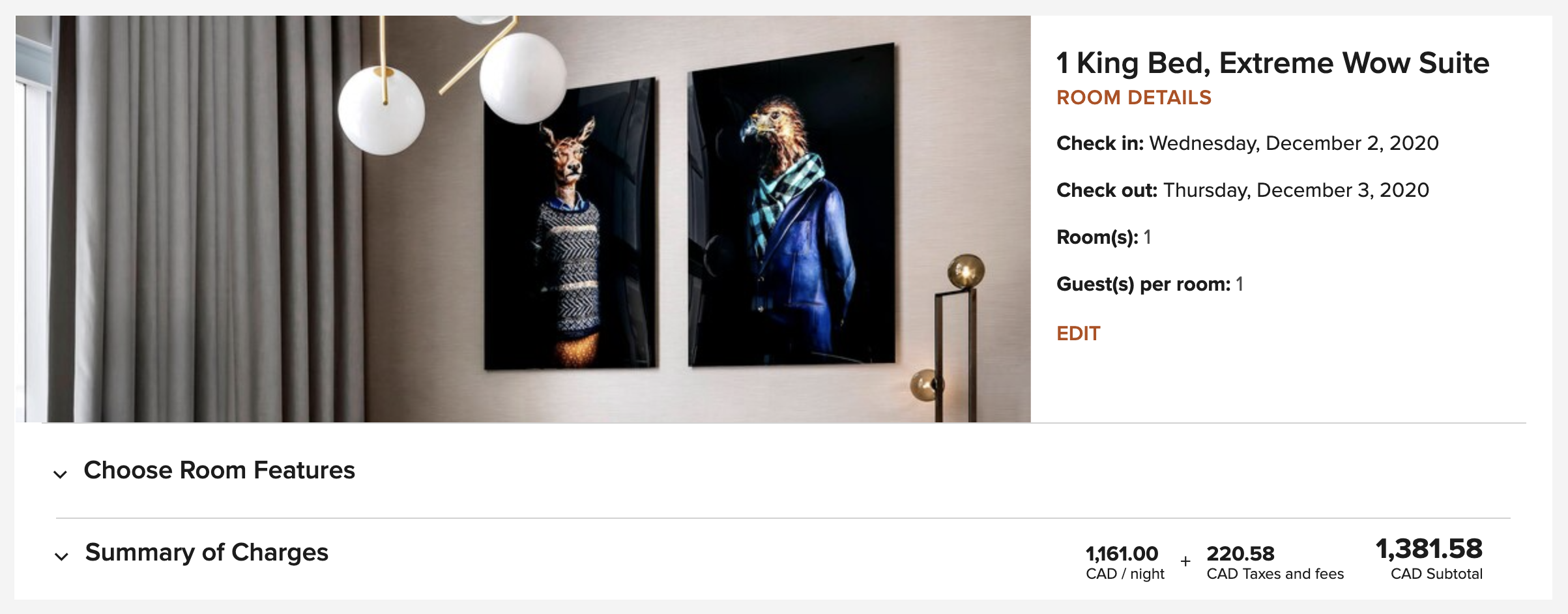 Looking at the cash rates of the Extreme WOW Suite here at the W Montreal, I was somewhat surprised to see that it was “only” about $1,000–1,500 per night, which is a lot cheaper than what other Extreme WOW Suites around the world might typically be priced at. I had a feeling that I might be able to chance an upgrade to the Extreme WOW Suite from a base room, whereas that would be a lot tougher to accomplish at other Ws globally.