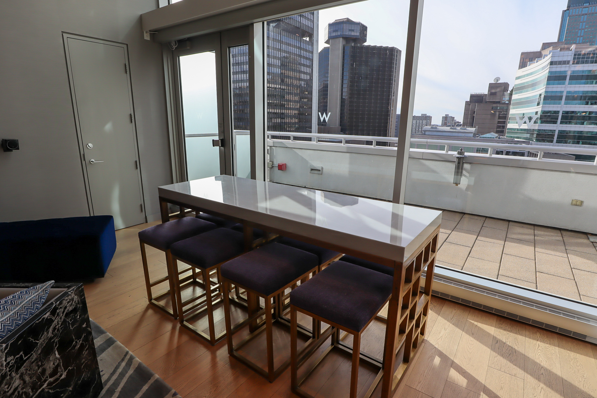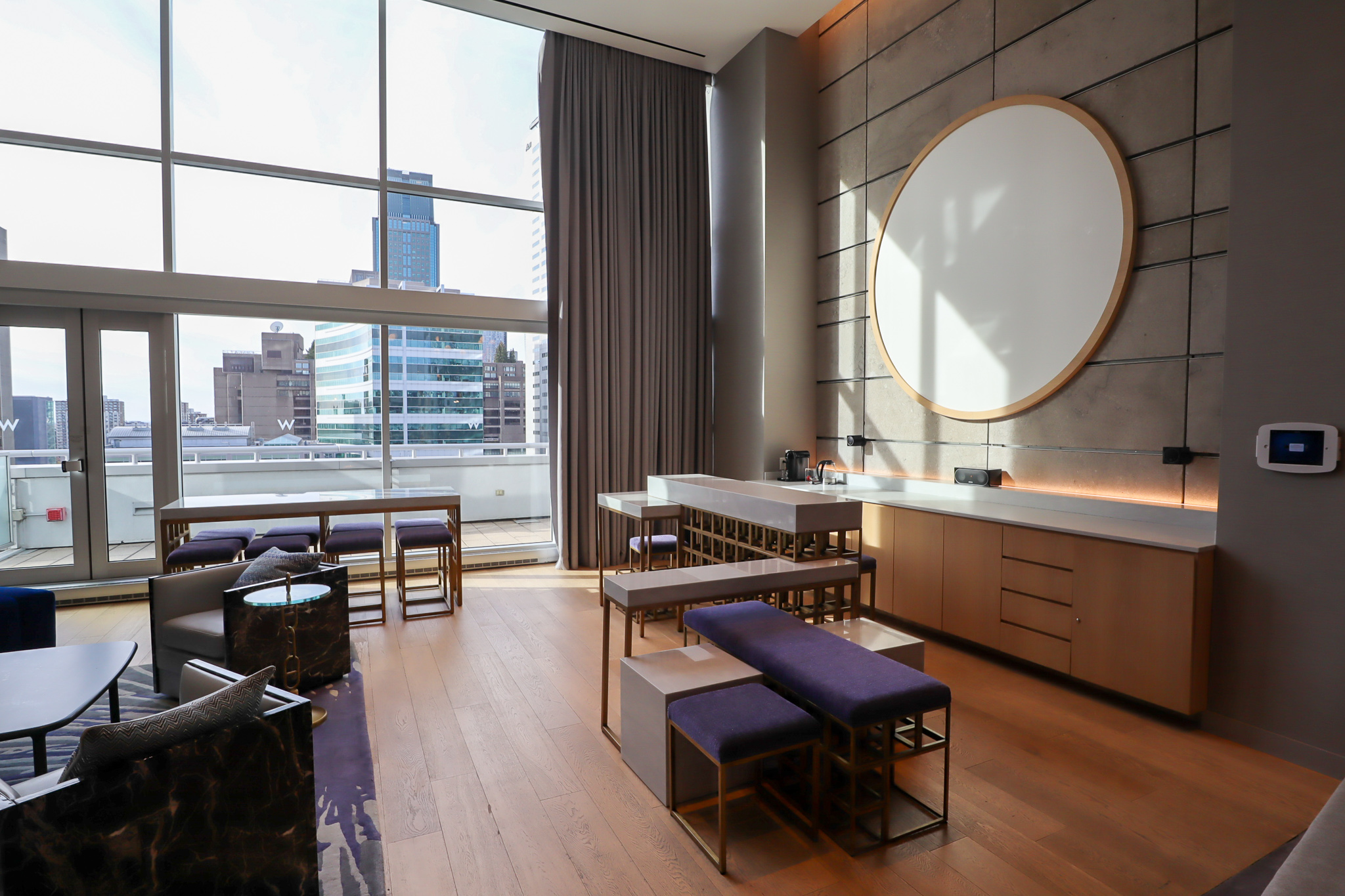 The W Montreal has three Extreme WOW Suites: Rooms 1001, 1012, and 1013. Room 1001 is the largest and most popular unit, and in addition to being the best suite in the house, it often serves as a space for events, gatherings, and bachelor(ette) parties.