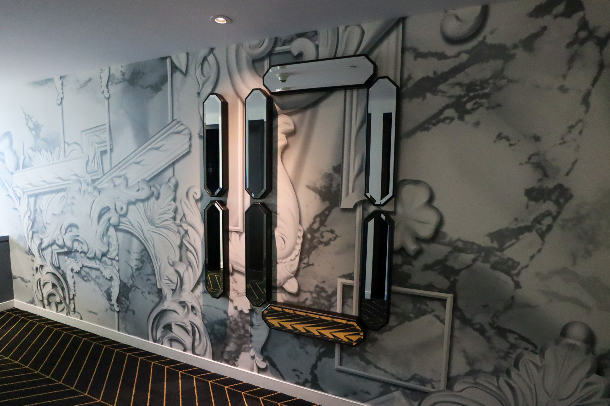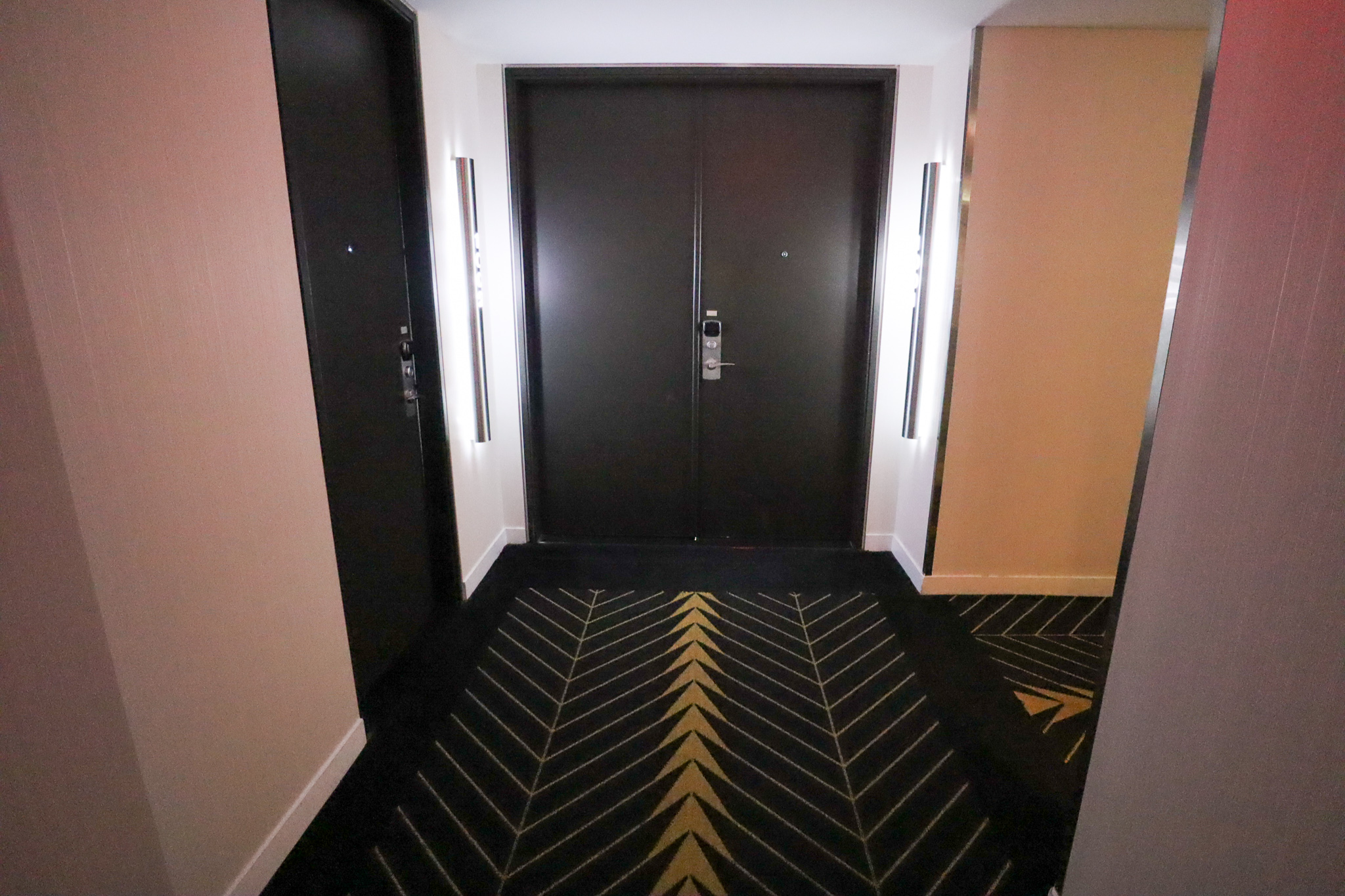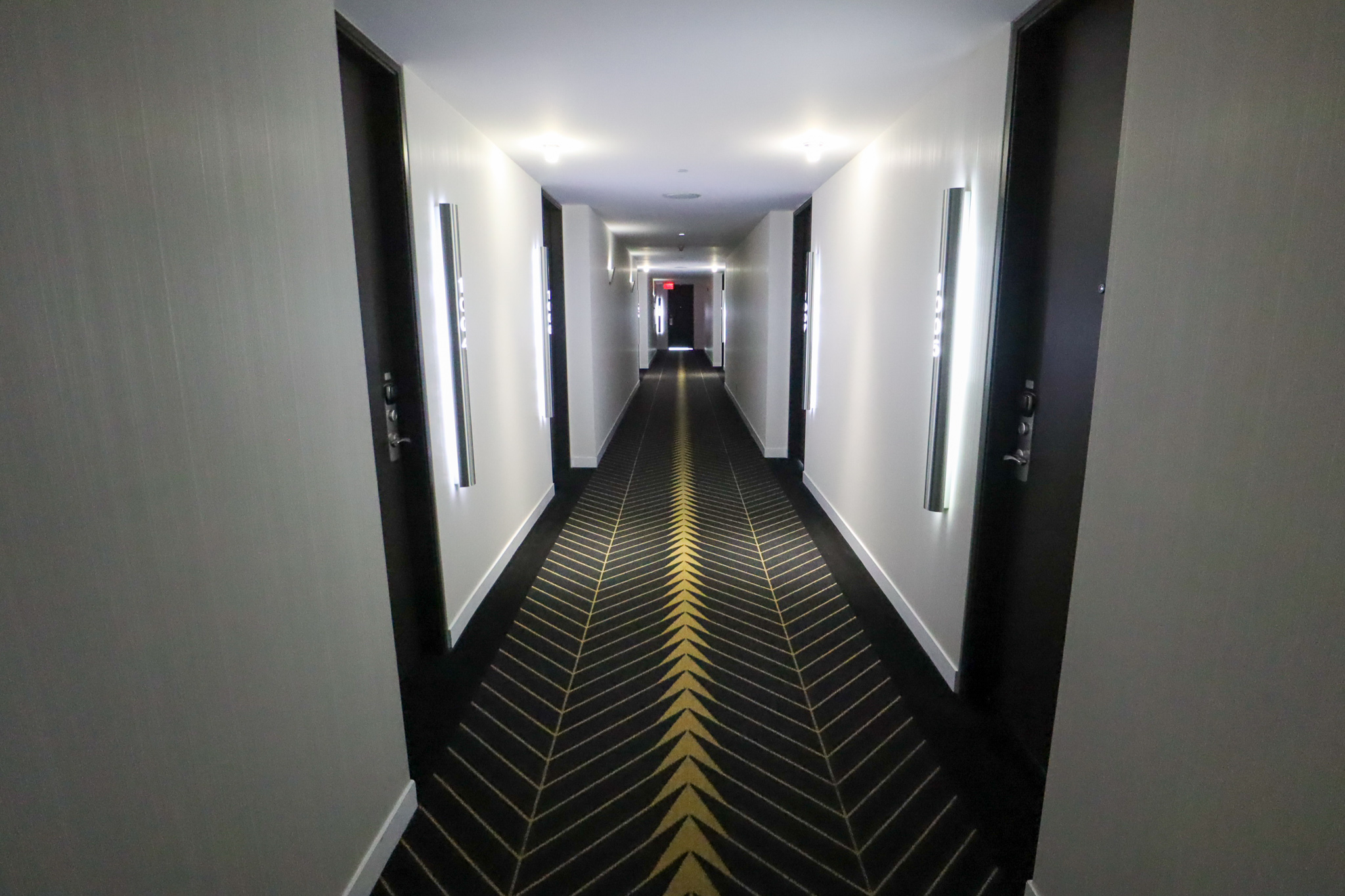 The interior hallways are an interesting mix of bleach-white walls, jet-black floors, and golden arrow-shaped markings on the ground. It felt like the inside of a racetrack on a spaceship, or something like that, and like any good W property, it certainly piqued your curiosity and made you wonder.