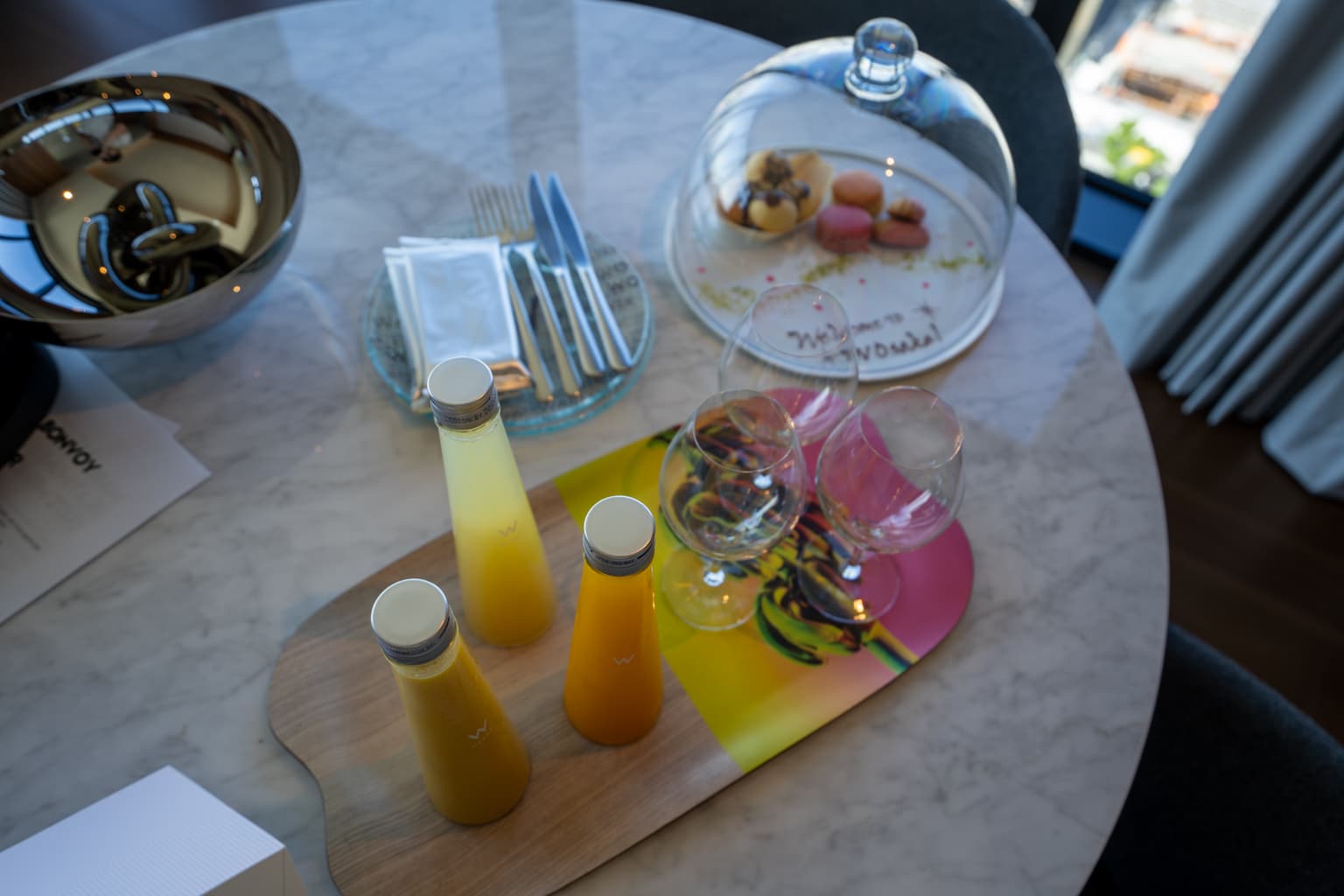 On the table in the living area, we were greeted with a welcome gift of some juices and sweets.