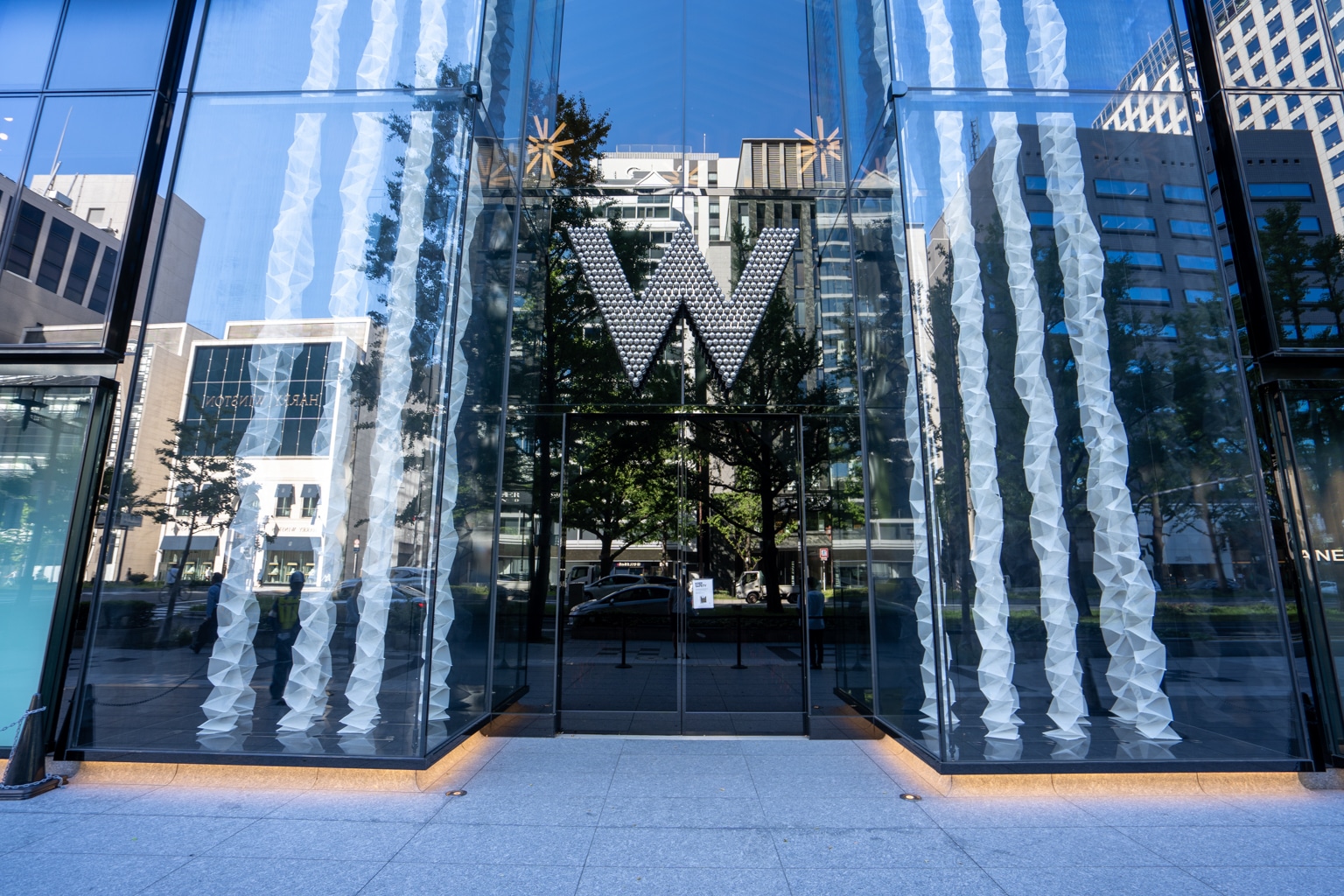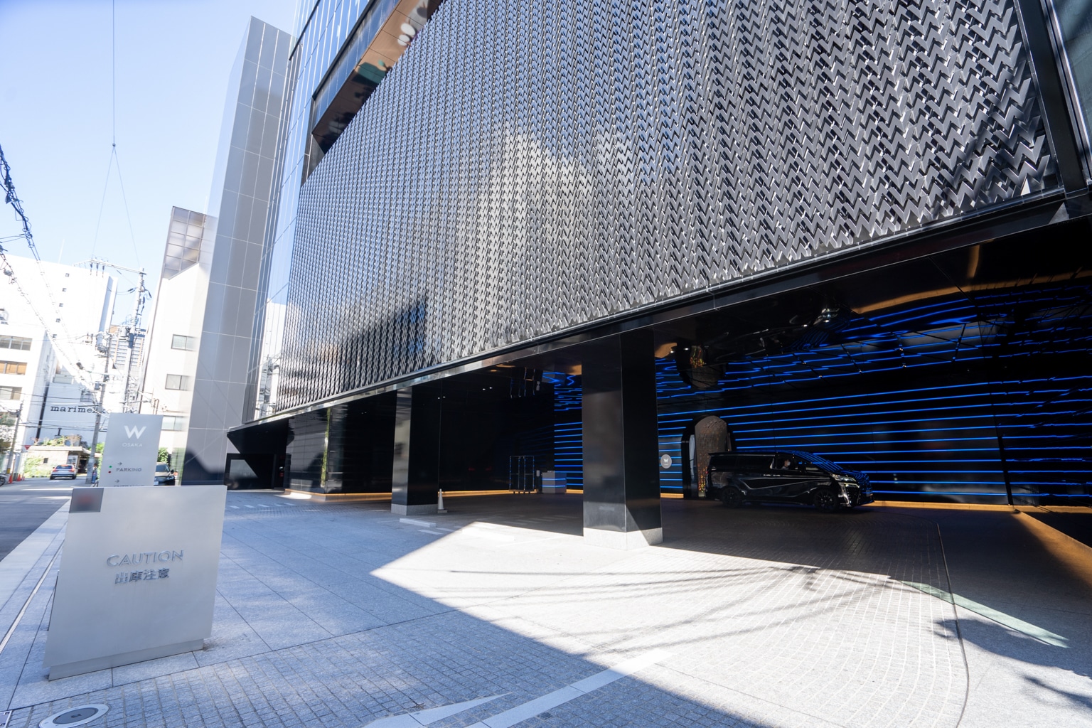 Instead, we arrived at the vehicle entrance at the back, marked with illuminated neon lights under a wall of “W” letters.