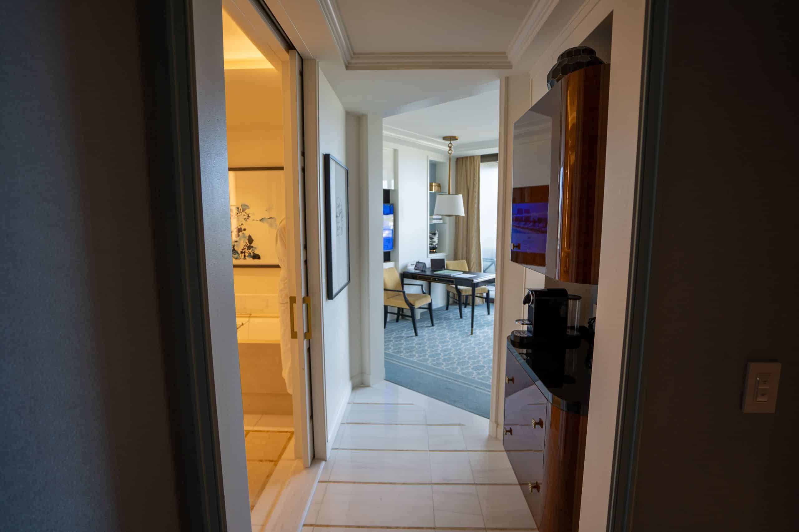 Upon entering the room, we were greeted by a tiled foyer, with the bathroom conveniently situated to the left.