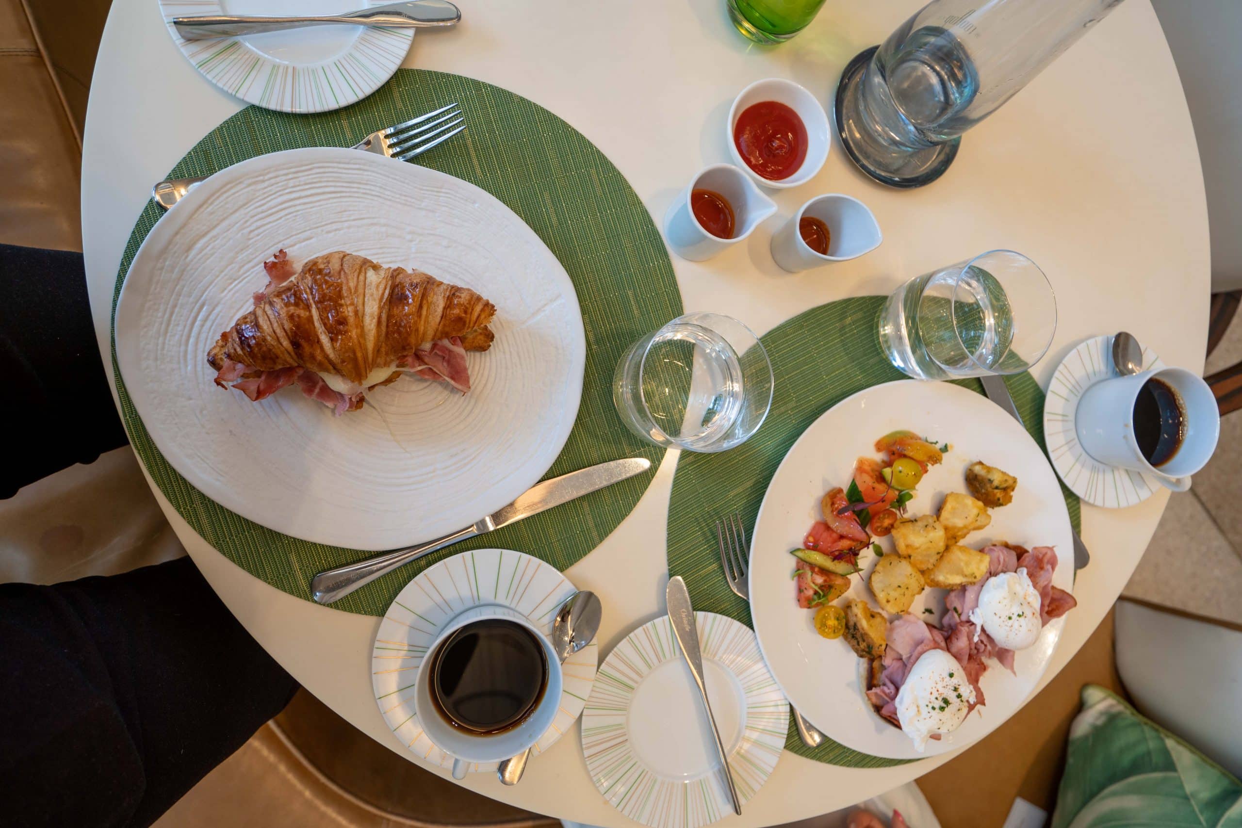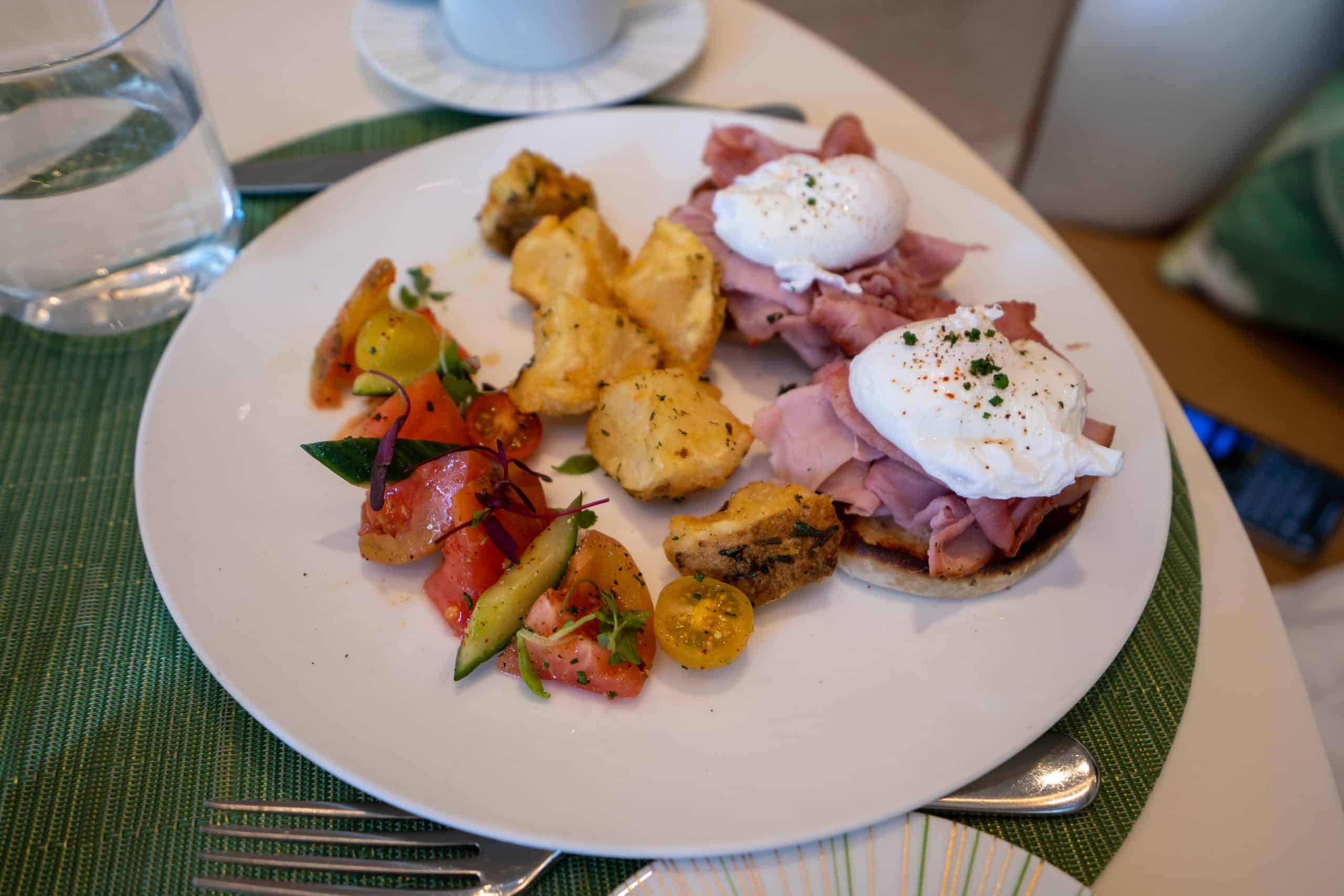 We ordered the chef’s special, which was a ham and cheese croissant, and also the eggs Benedict with ham and smoked salmon. I must say, both were quite tasty; however, the $25 (USD) per person food and beverage credit didn’t stretch very far.