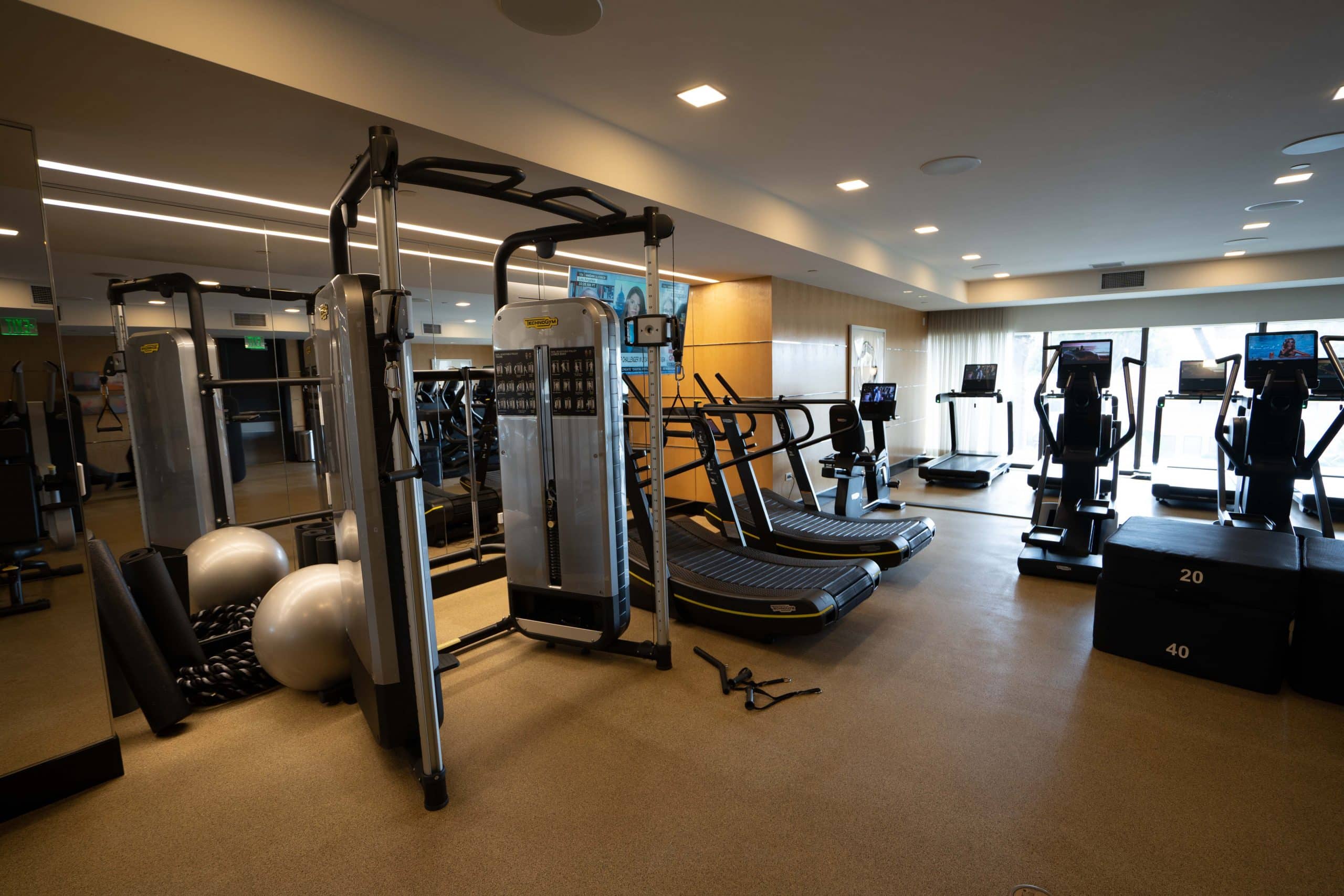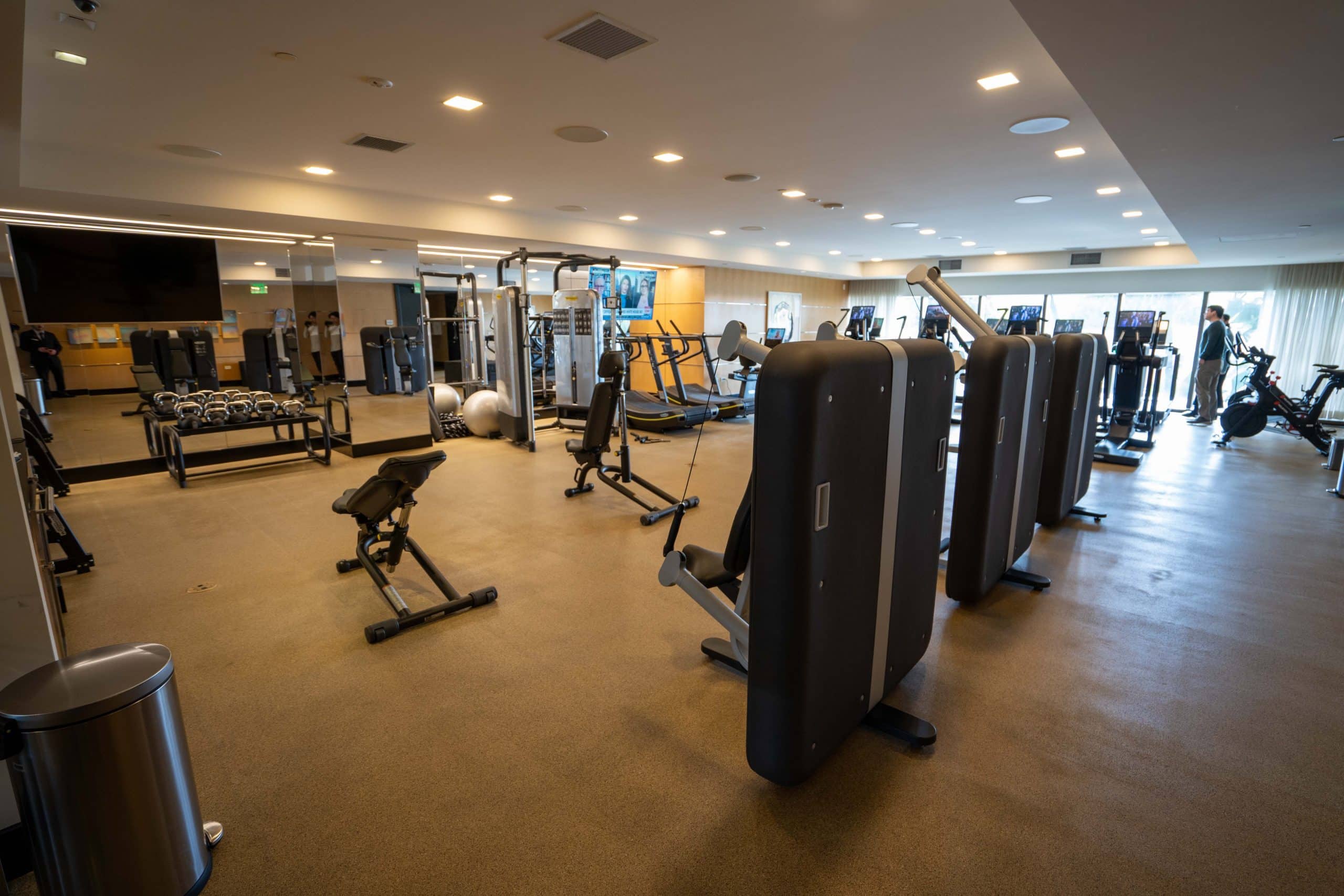 The fitness centre is open around the clock, and is located on the second floor. It’s quite spacious and has everything you’d need for a good workout, with an ample number of cardio machines, weight machines, and free weights.
