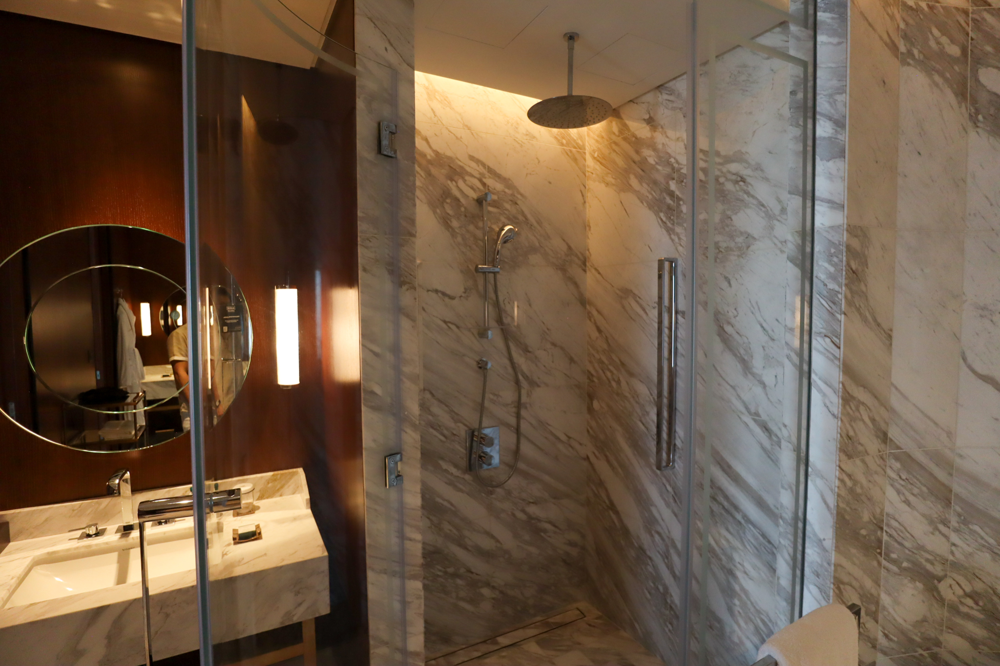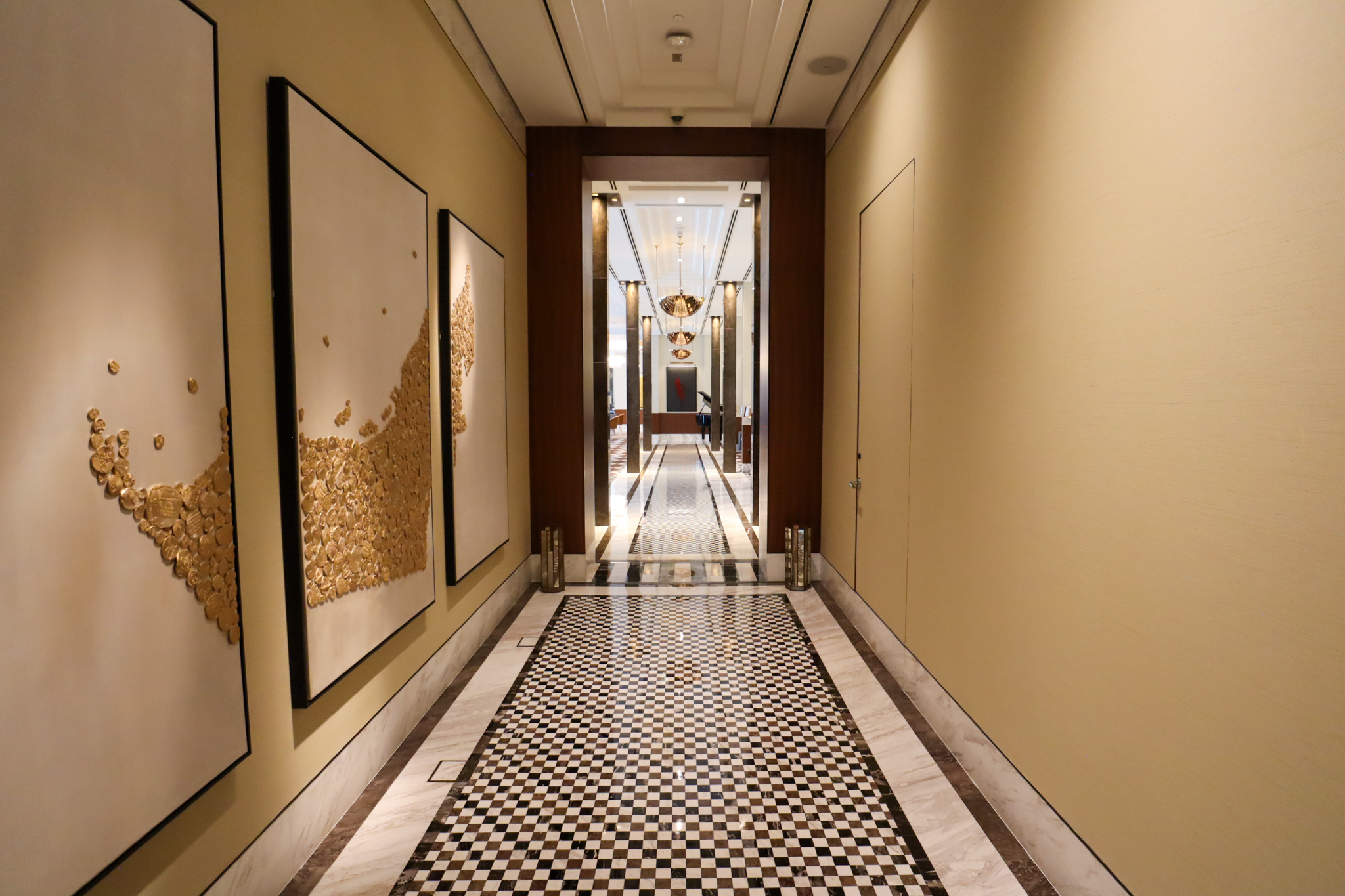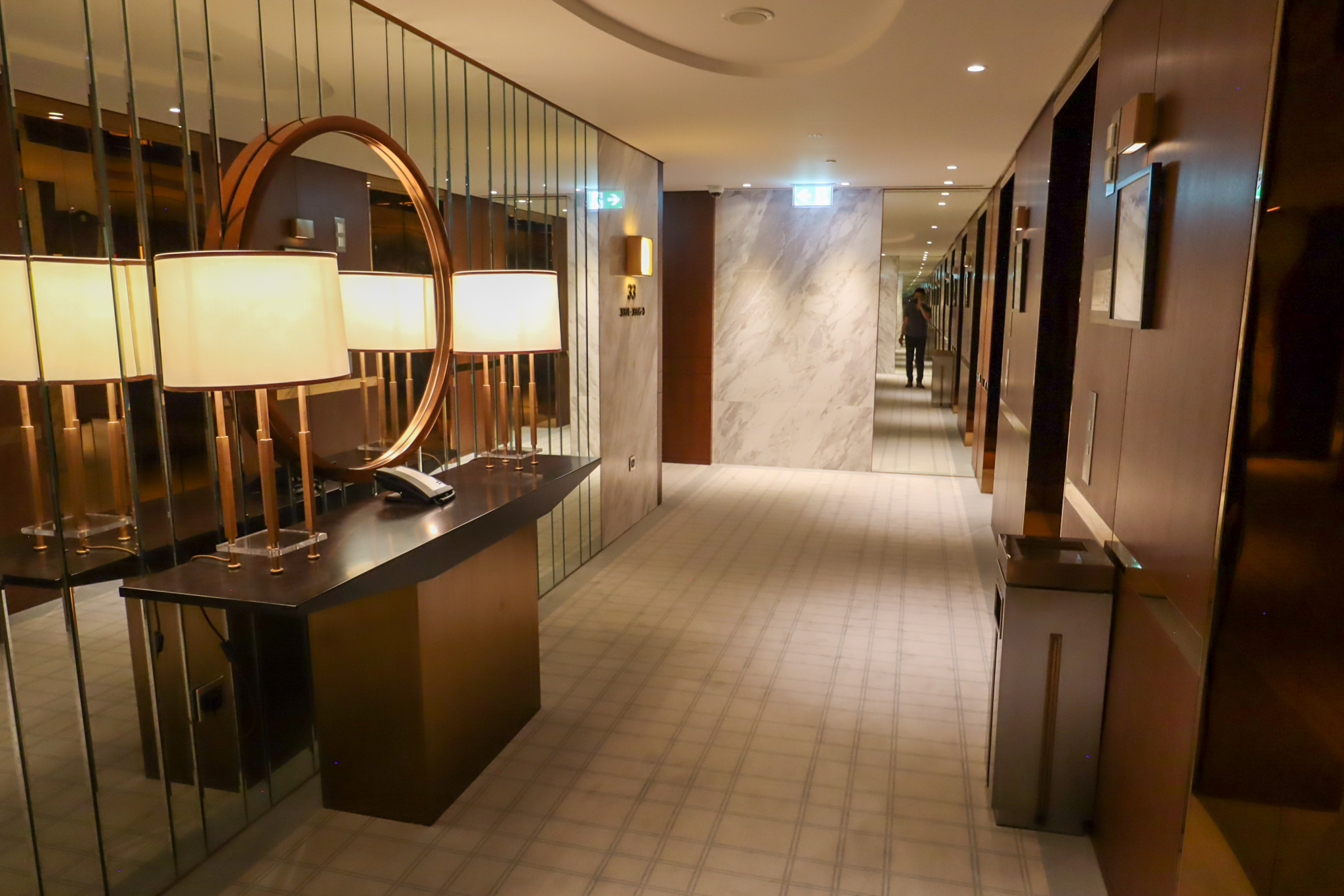 Looking at the guest room hallways, I already knew that I was going to really enjoy this hotel: the emphasis on brass, bronze, and marble materials was very much to my liking.
