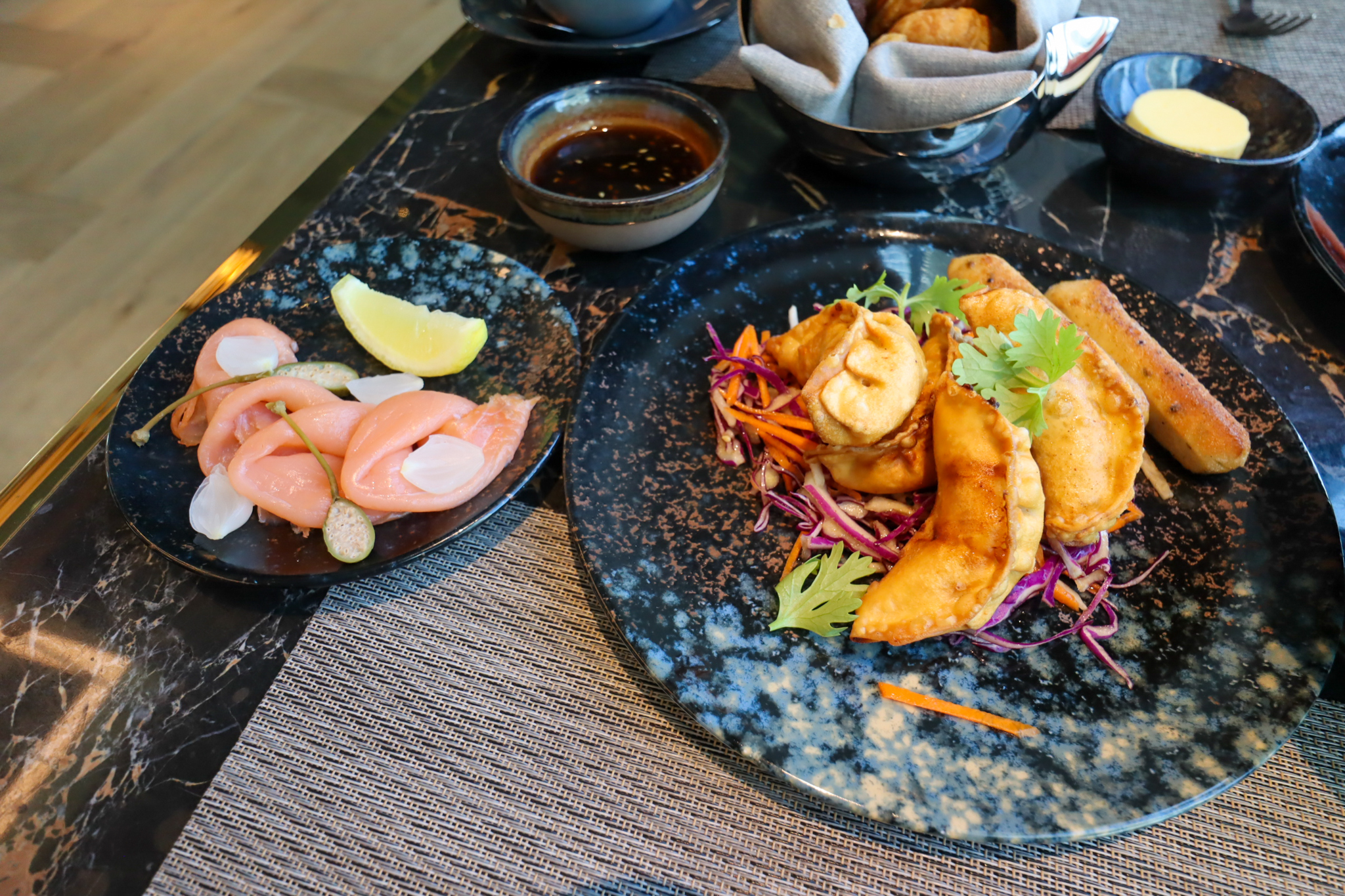 I also ordered the prawn gyoza as a separate item on the second morning, which I billed to my room for an extra 45 AED ($16) on the side.