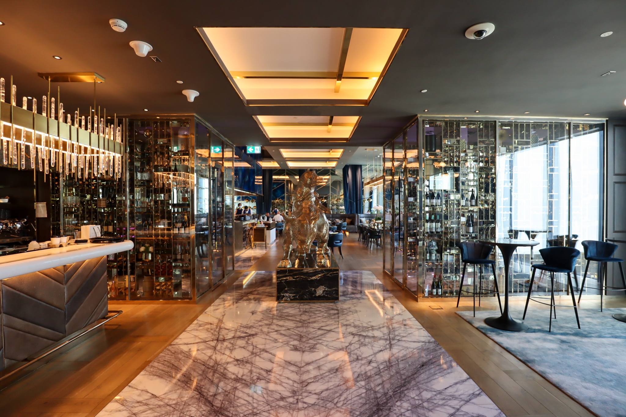 Bull & Bear takes the glossy and shiny decor elements of the hotel and turns it up a few notches, as exemplified by the life-sized bronze sculpture of a bear fighting a bull in the centre of the restaurant.