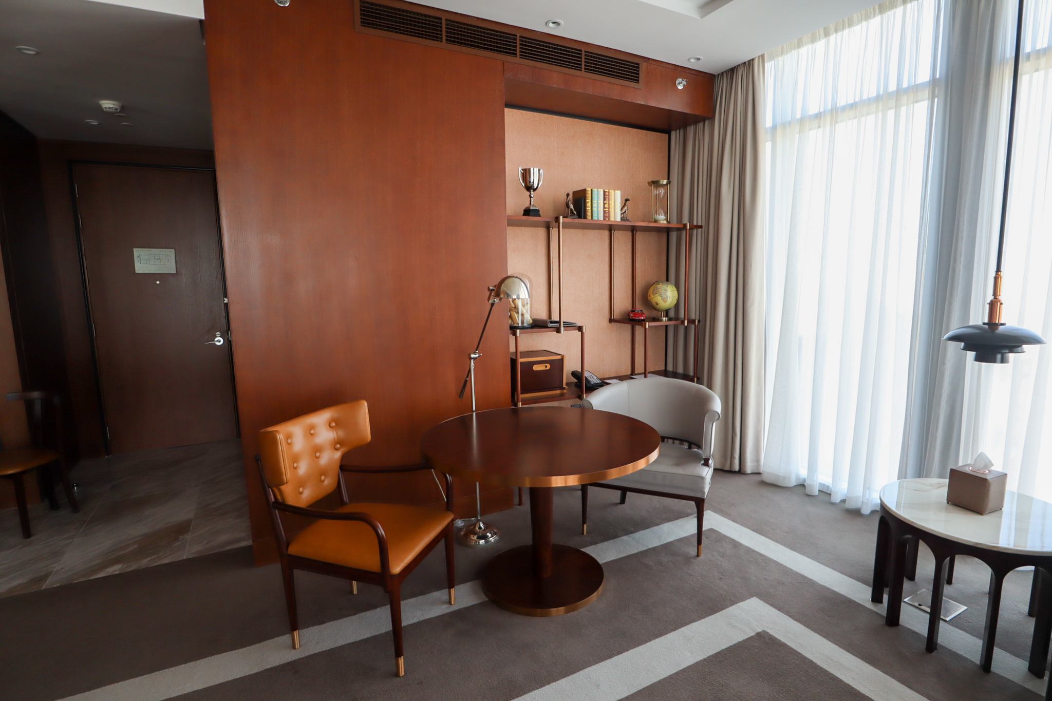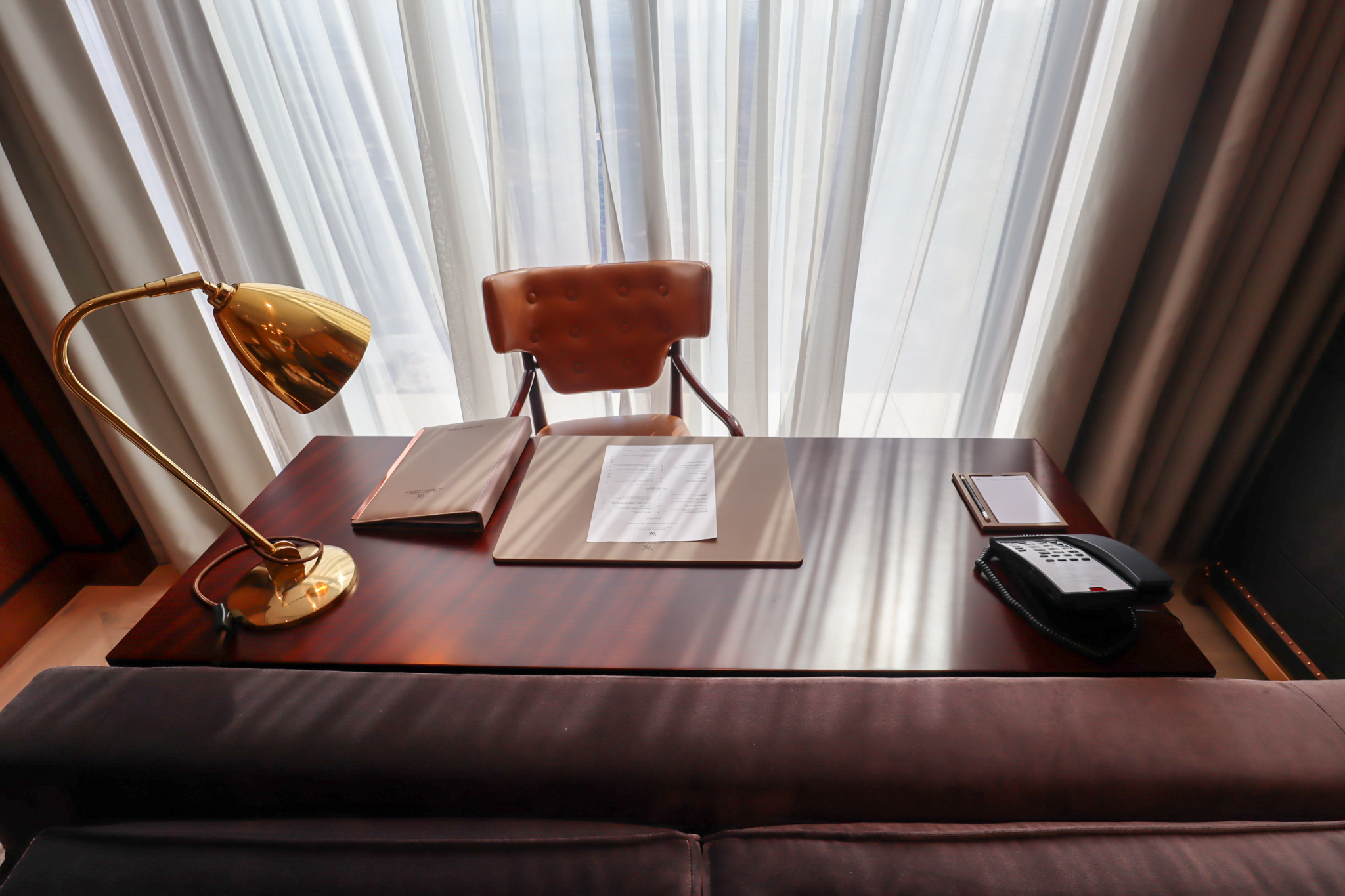 Over on the far side of the room was a large wooden desk. At first glance, this seemed to me like it would be an extremely inspiring spot to work from, but it turned out to be a bit challenging to work here during the daytime because of the glare from the window immediately behind the desk. Perhaps the only real design flaw in the whole of the King Premier Suite.