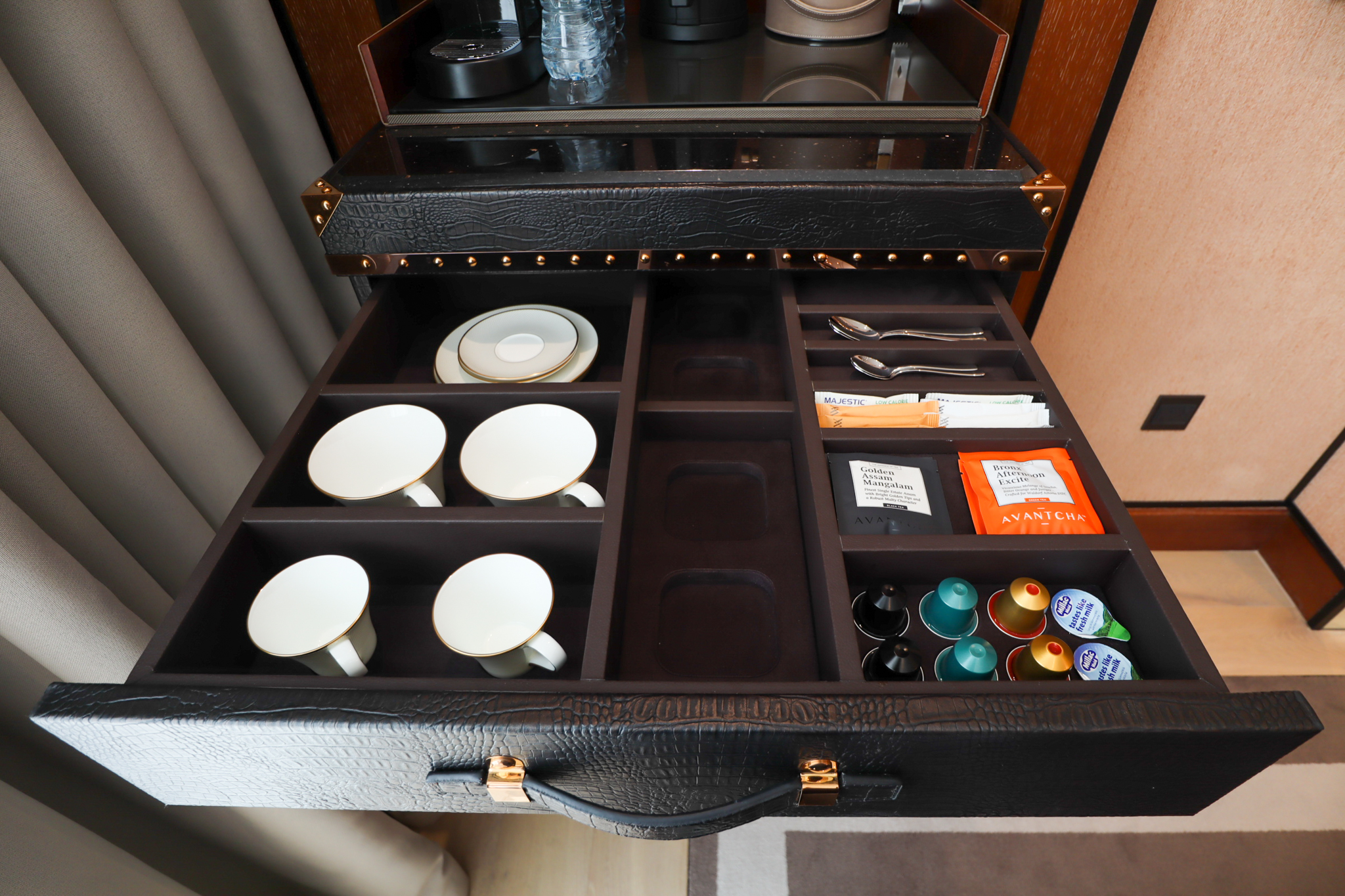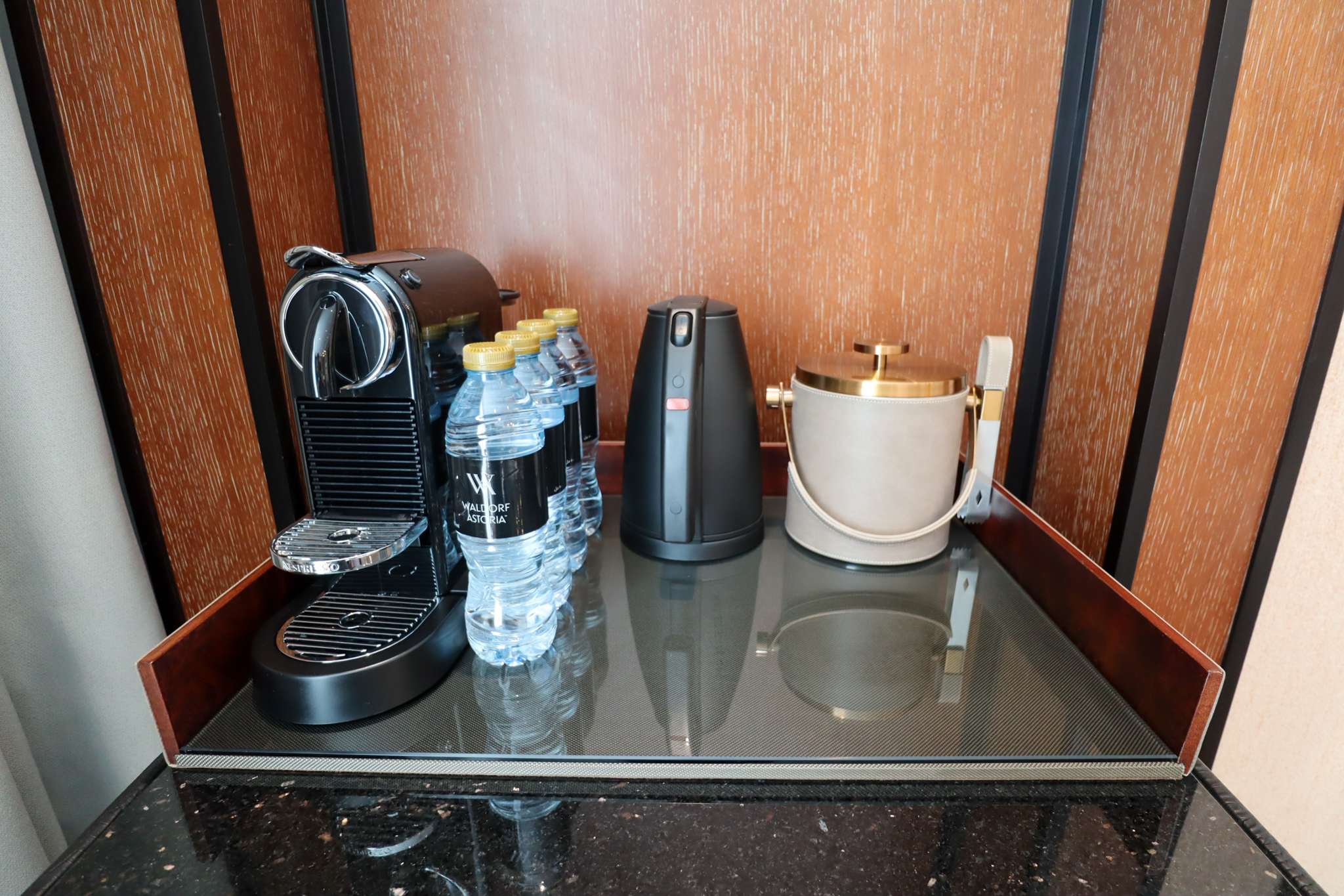 Perched in the corner was the pantry and minibar, complete with a Nespresso machine.