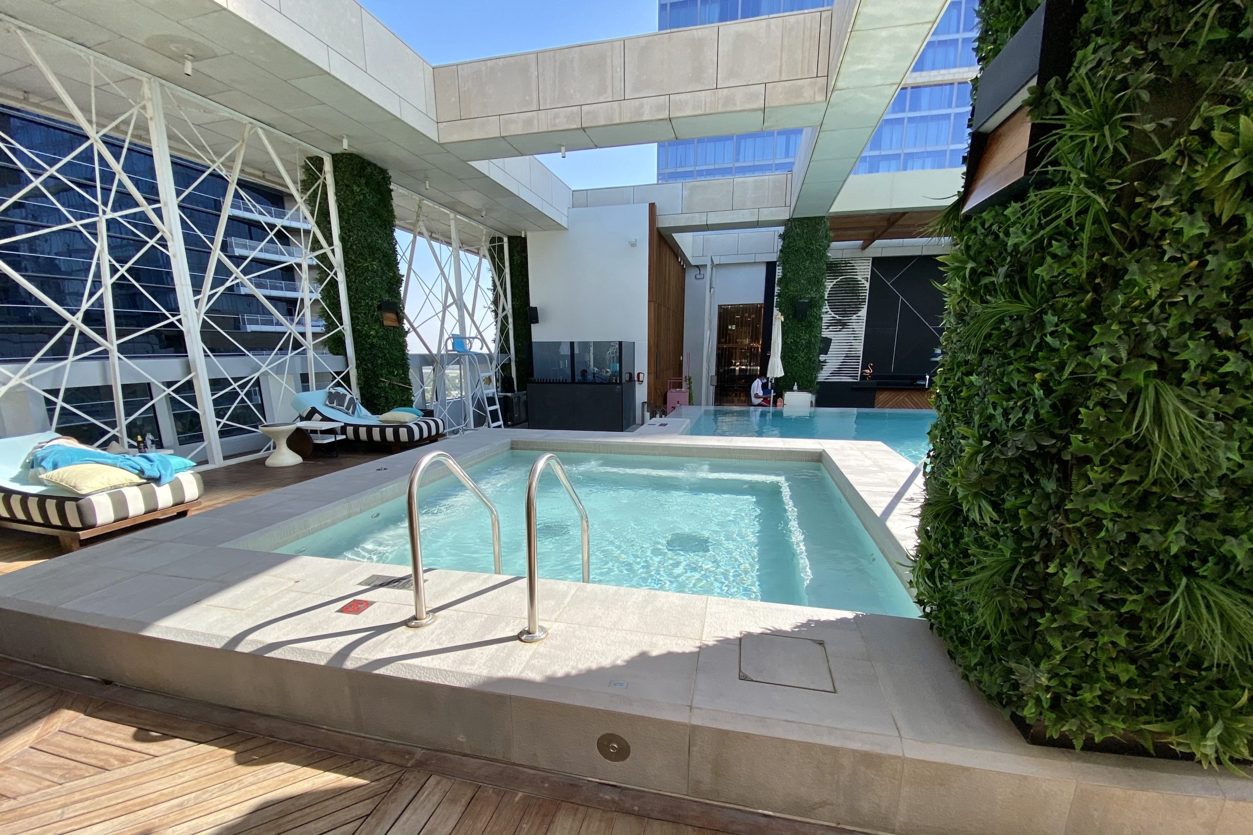 After my gym visit, I decided to unwind by the outdoor pool for a while. I’d also describe the pool as just okay, rather than outstanding – my major complaint being a series of overhead girders that made it tough to get some proper sun.