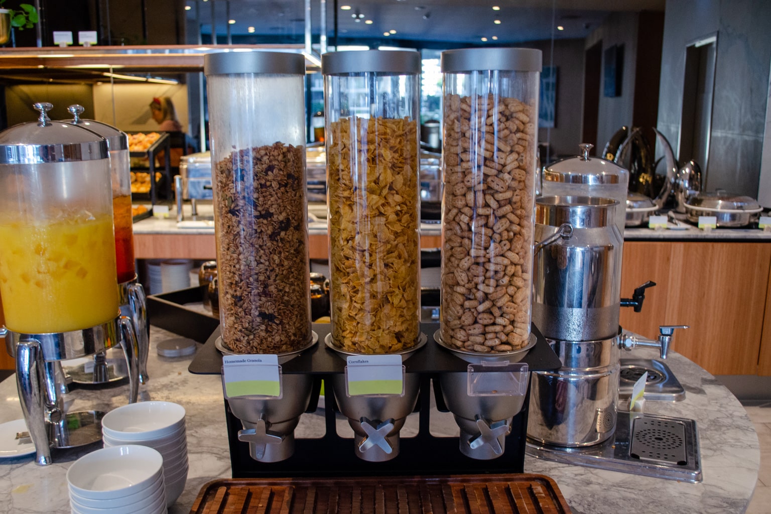 Breakfast is hosted here in the morning. We stopped by for a quick bite before heading to the airport, as we were looking forward to checking out the Virgin Australia lounge.