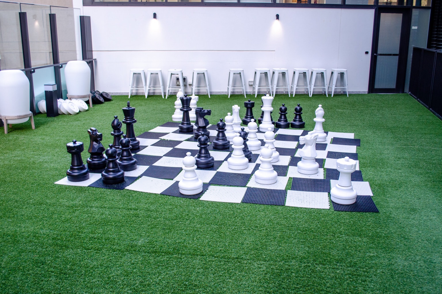 Close to the cabanas is a full-sized chess board.