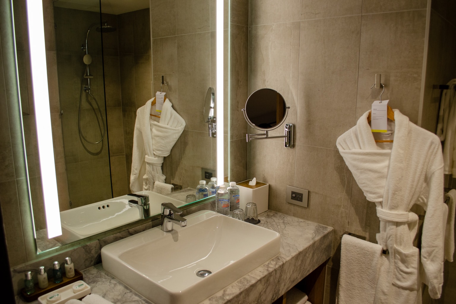 The associate apologized and had us moved to the same room type on a different floor. There was still a faint hint of an unpleasant odour in the bathroom, which I suspect had something to do with the floor drain, but it wasn’t nearly as noticeable as in the other room.