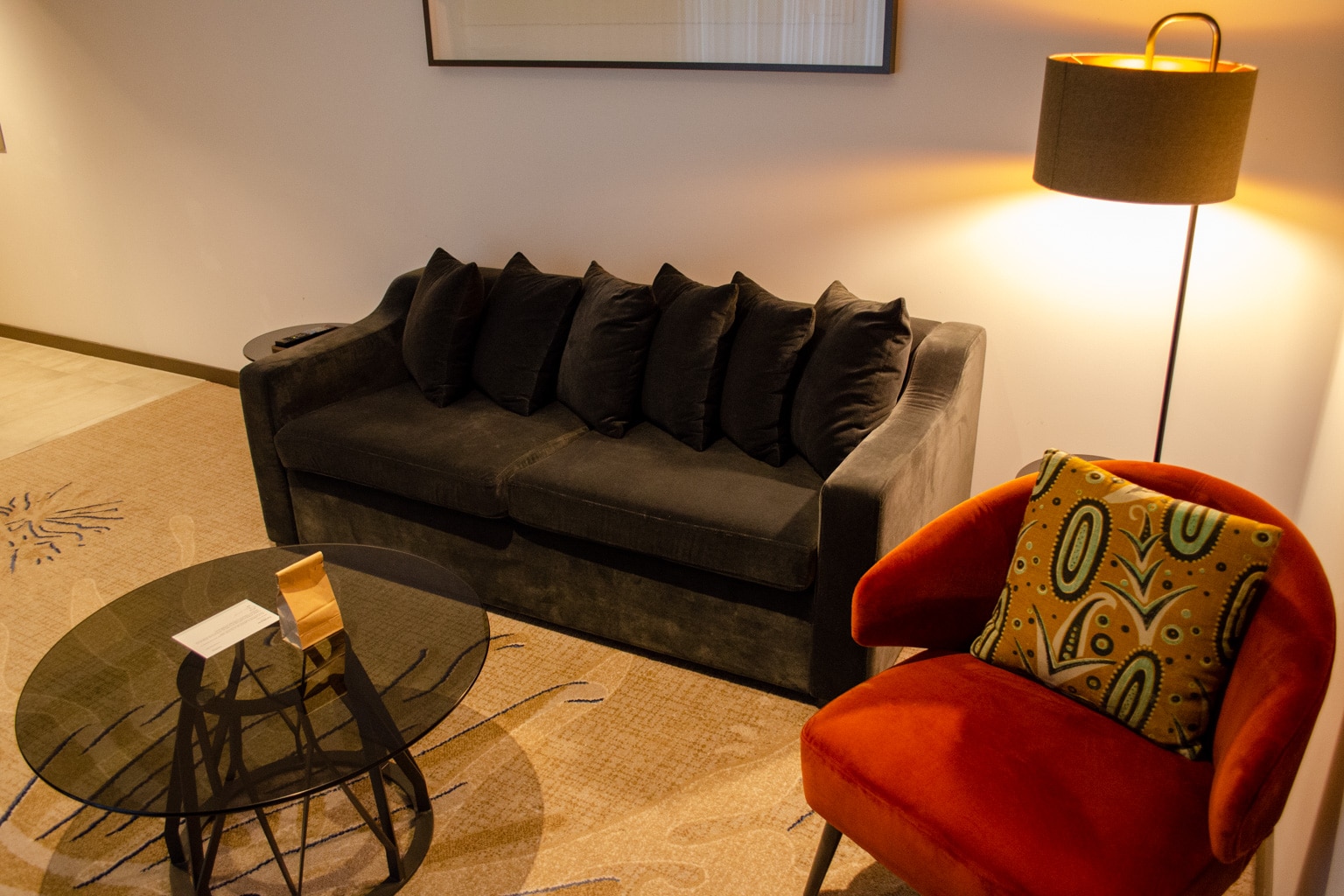 As a couple, we thought the room was very spacious, which allowed for me to wake up early and get some work in without disturbing my wife while she slept in. I also appreciated that there were many different seating areas throughout the room.