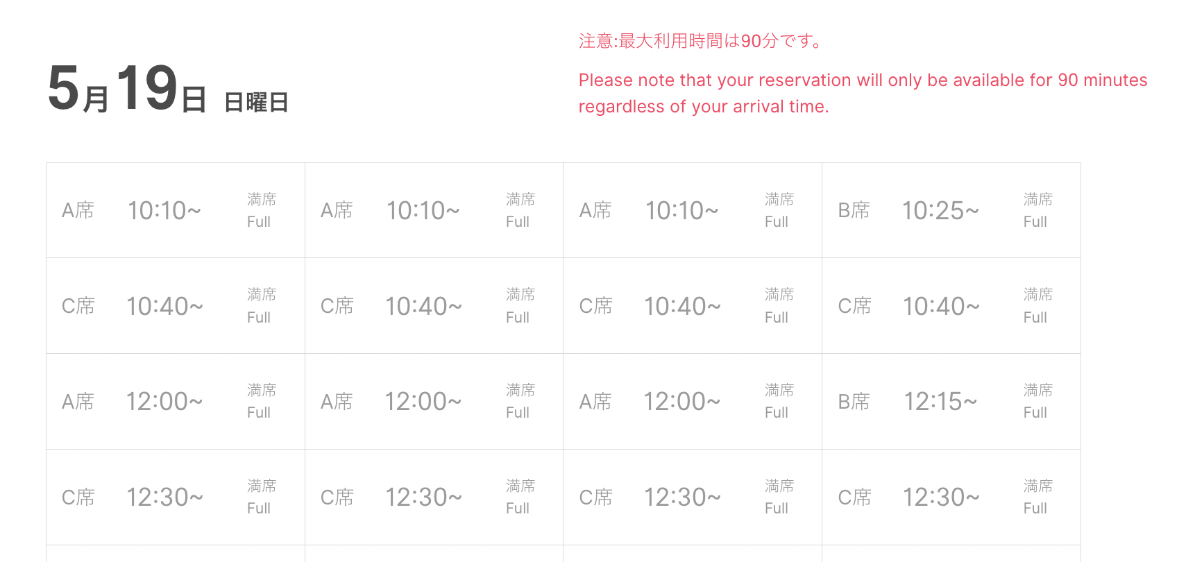 To make a reservation, select the number of guests and the date of your visit. After this, the time slots for that day will pop up. Chances are that you’ll see all the time slots greyed out, meaning that they are fully booked and not available for booking.